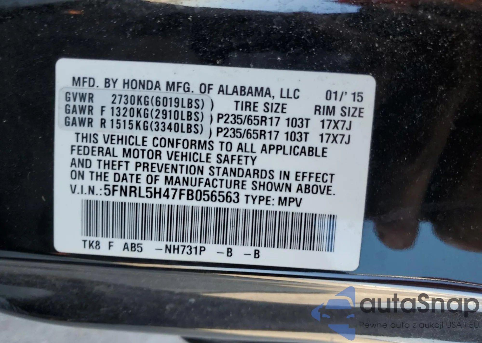 VIN: 5FNRL5H47FB056563