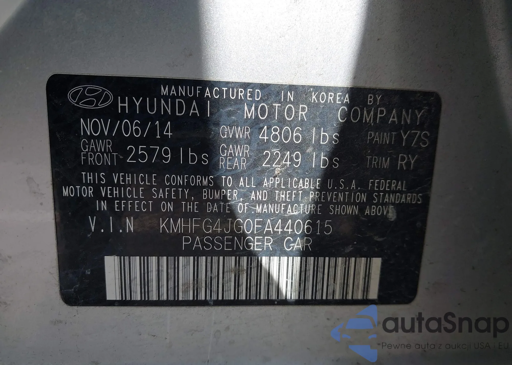 Samochód Hyundai Azera 2015 (VIN KMHFG4JG0FA440615) nie był wcześniej licytowany. Dokumenty są czyste, przebieg odpowiada lub jest niższy niż średnia rynku. Sprzedaje go firma ubezpieczeniowa – polecamy zakup. Dostawa do portu zajmie ok. 6–8 tygodni.