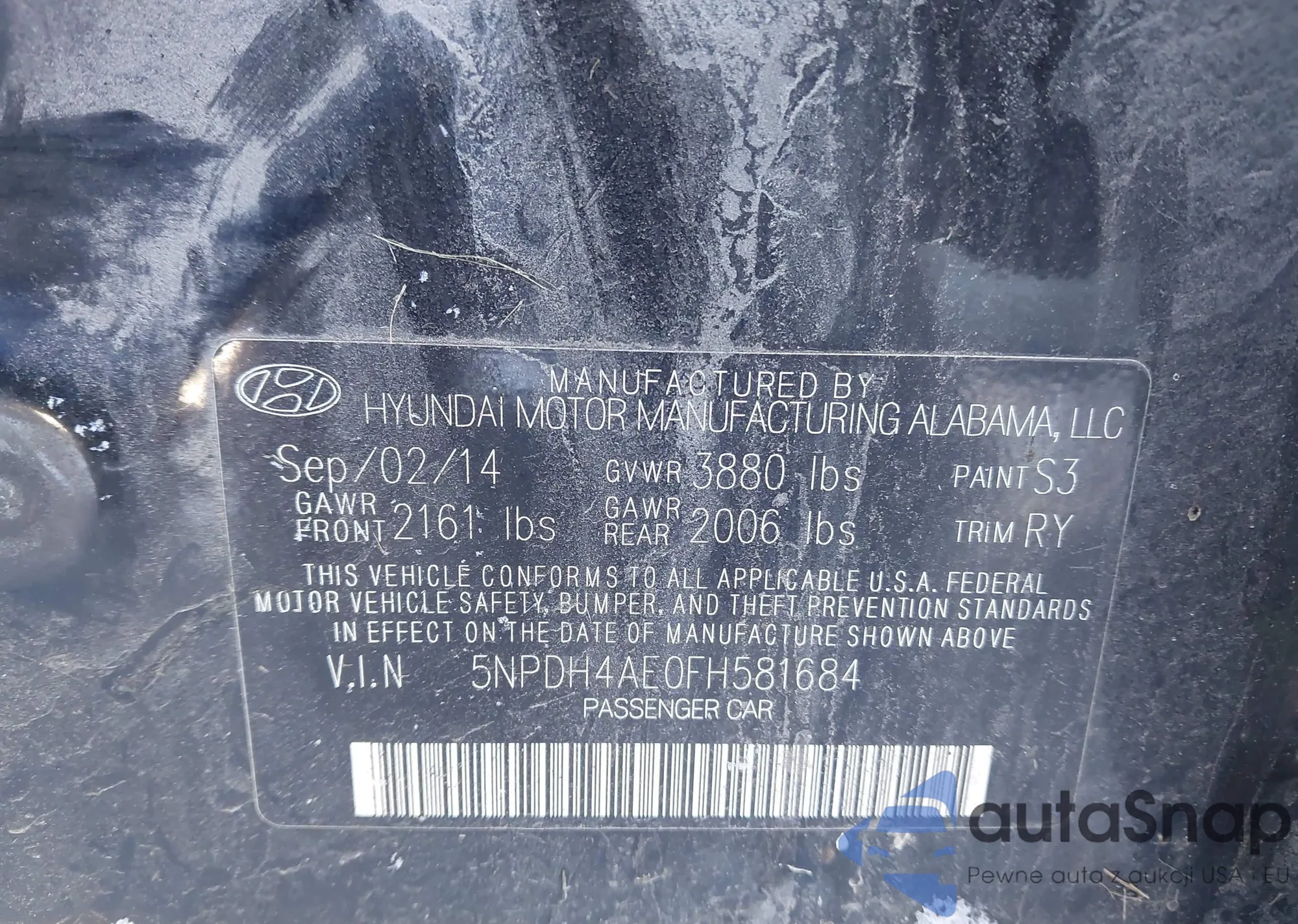 VIN: 5NPDH4AE0FH581684