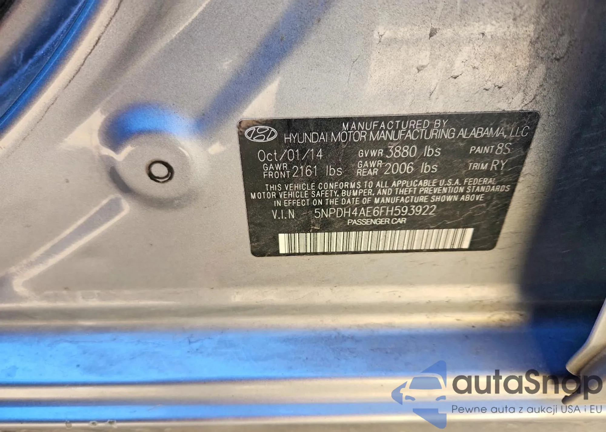 Samochód Hyundai Elantra 2015 (VIN 5NPDH4AE6FH593922) nie był wcześniej licytowany. Dokumenty są czyste, przebieg odpowiada lub jest niższy niż średnia rynku. Sprzedaje go firma ubezpieczeniowa – polecamy zakup. Dostawa do portu zajmie ok. 6–8 tygodni.