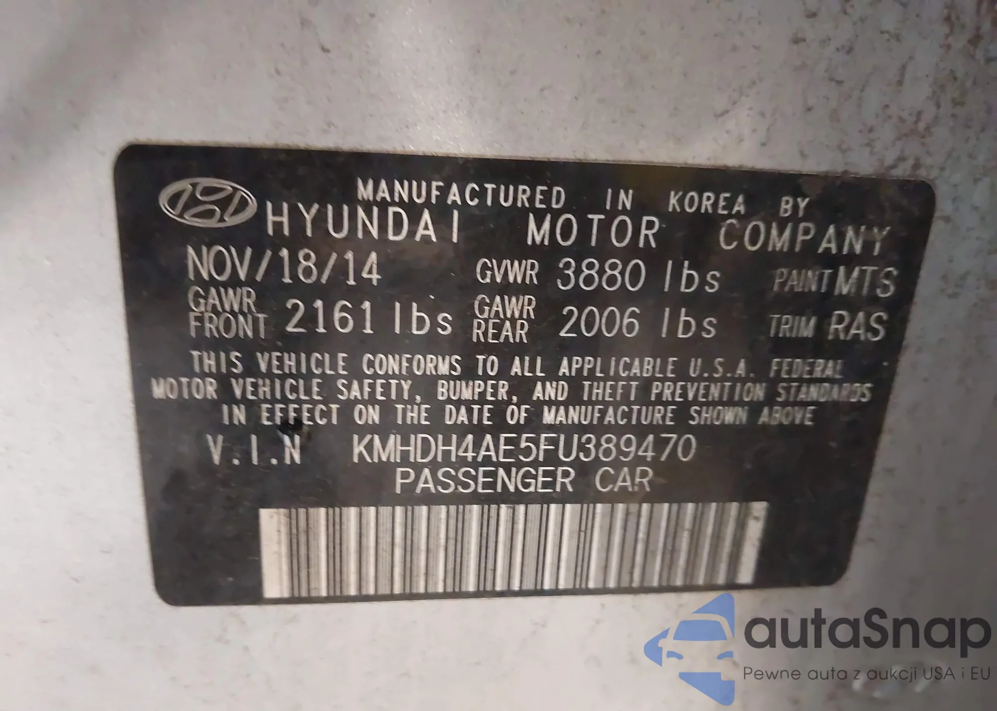 VIN: KMHDH4AE5FU389470