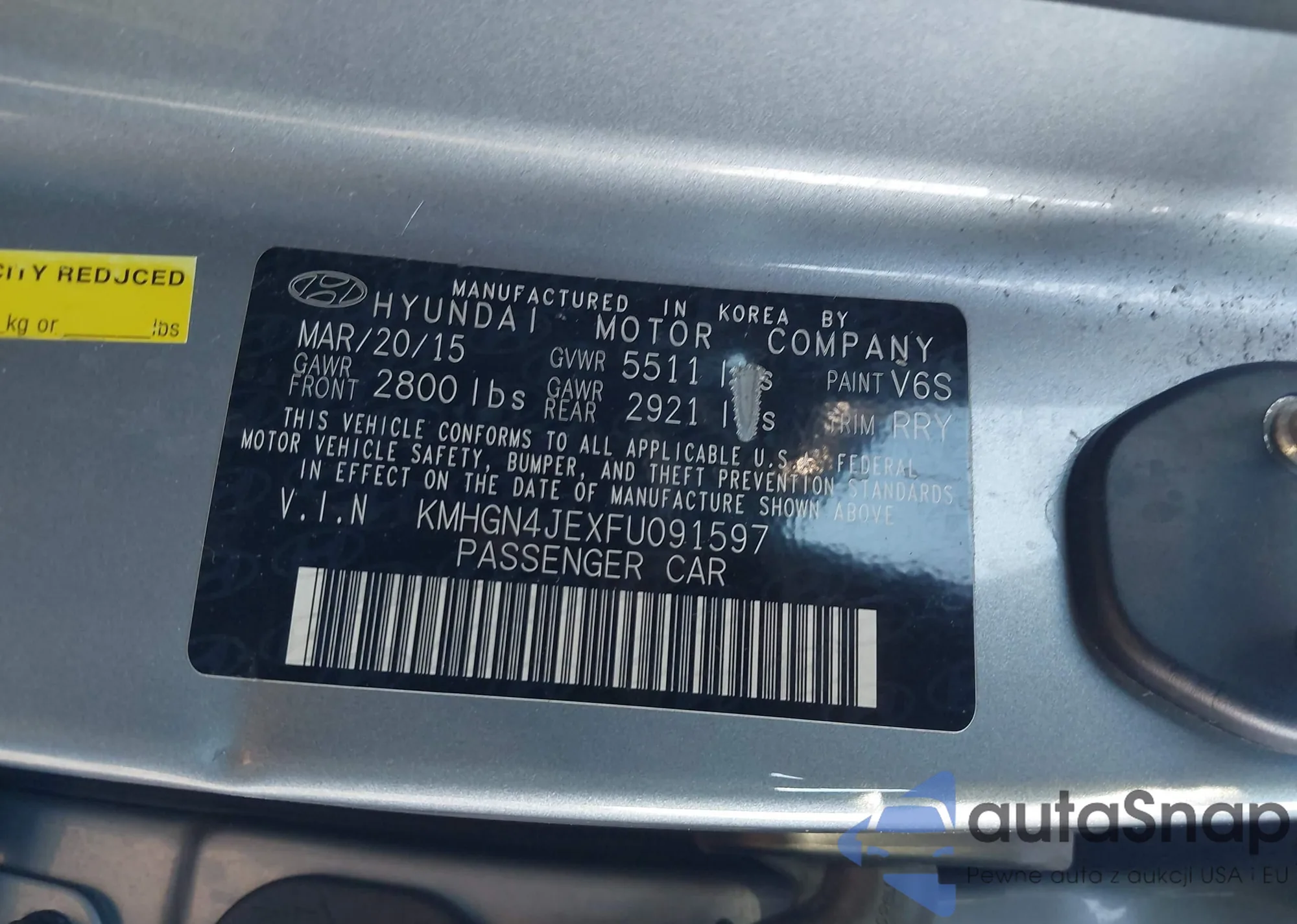 • VIN: KMHGN4JEXFU091597