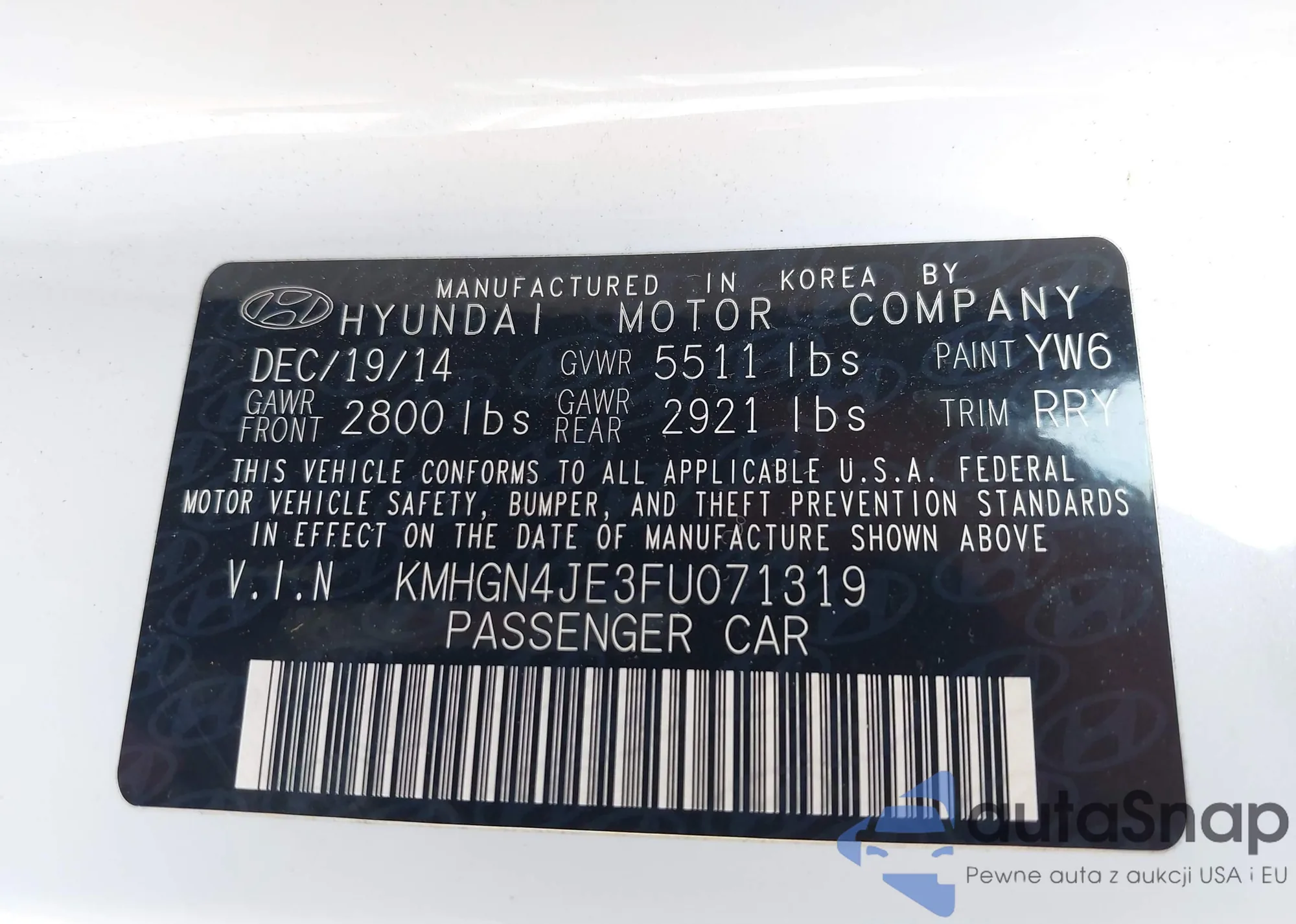 VIN: KMHGN4JE3FU071319