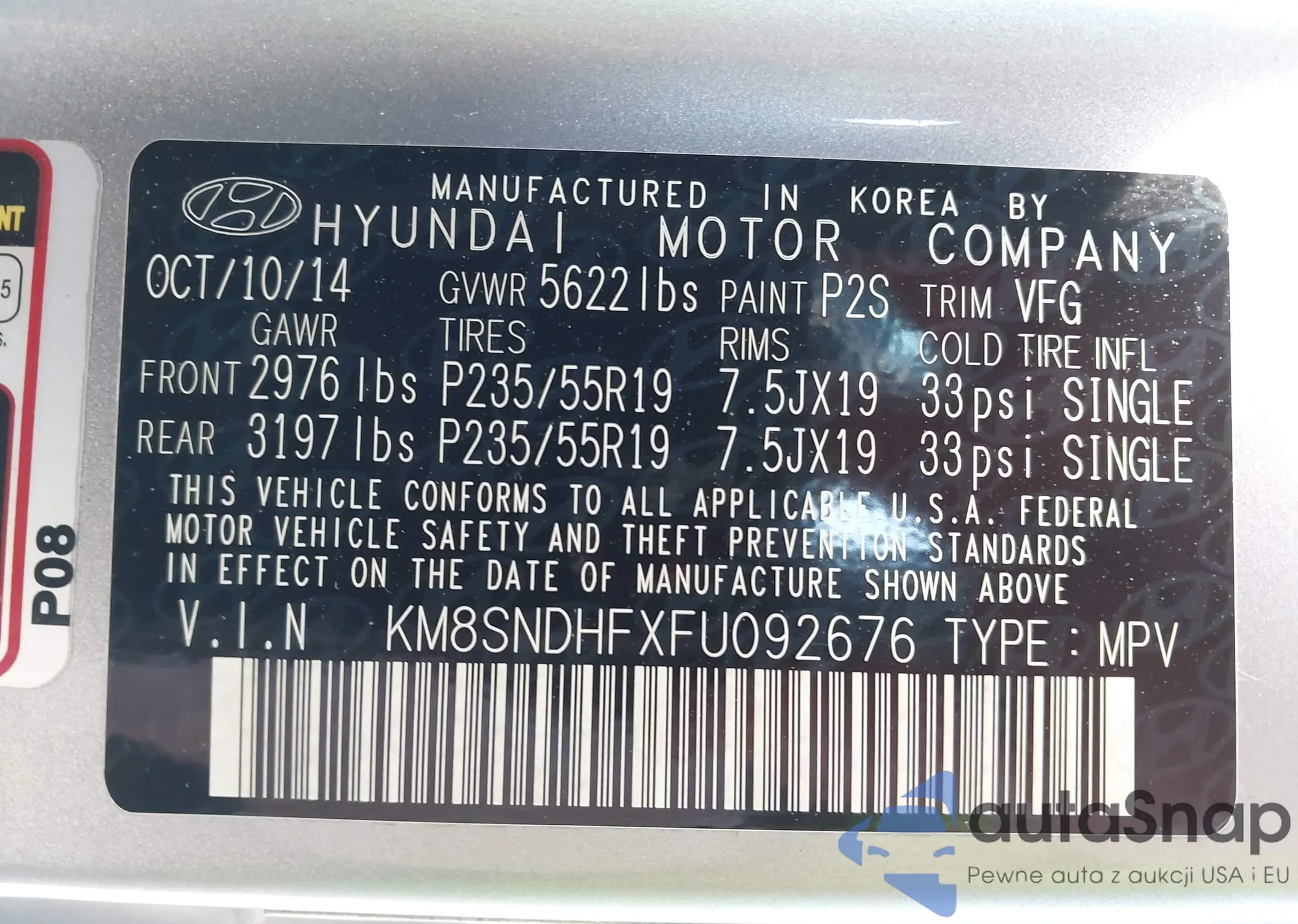 VIN: KM8SNDHFXFU092676