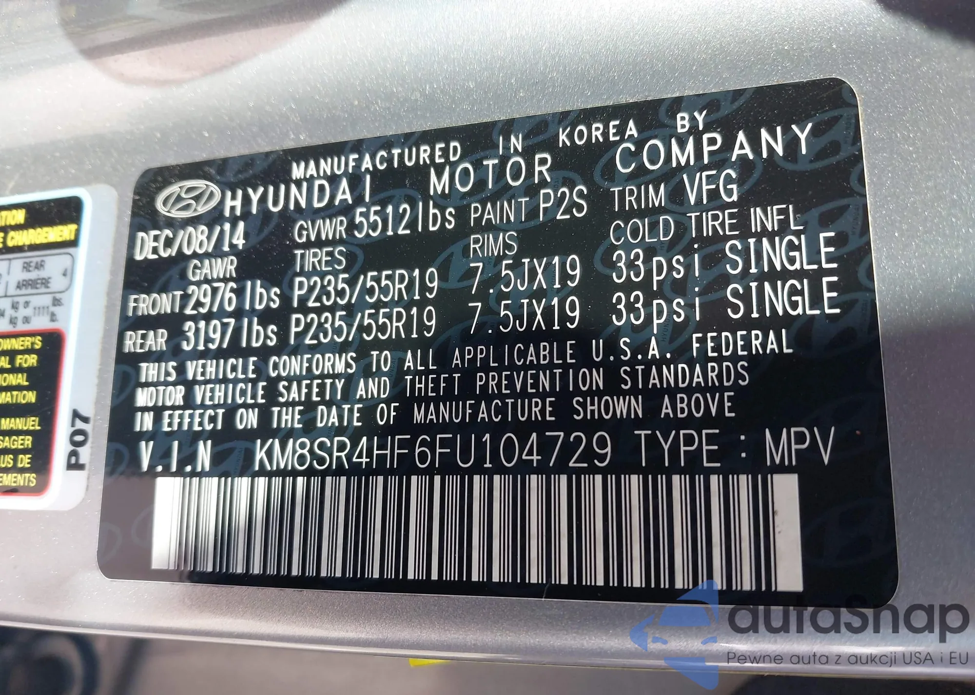 • VIN: KM8SR4HF6FU104729