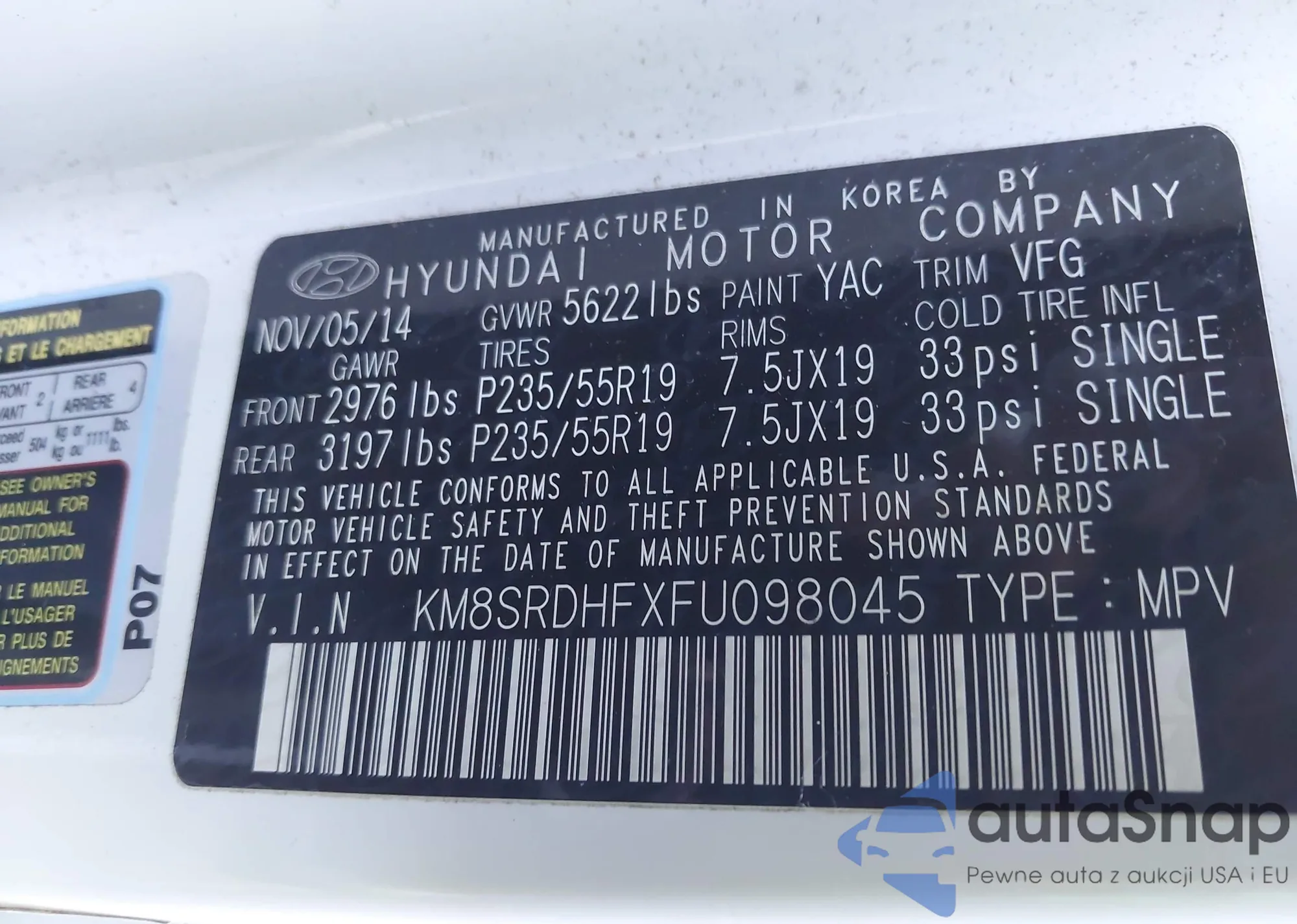 VIN: KM8SRDHFXFU098045