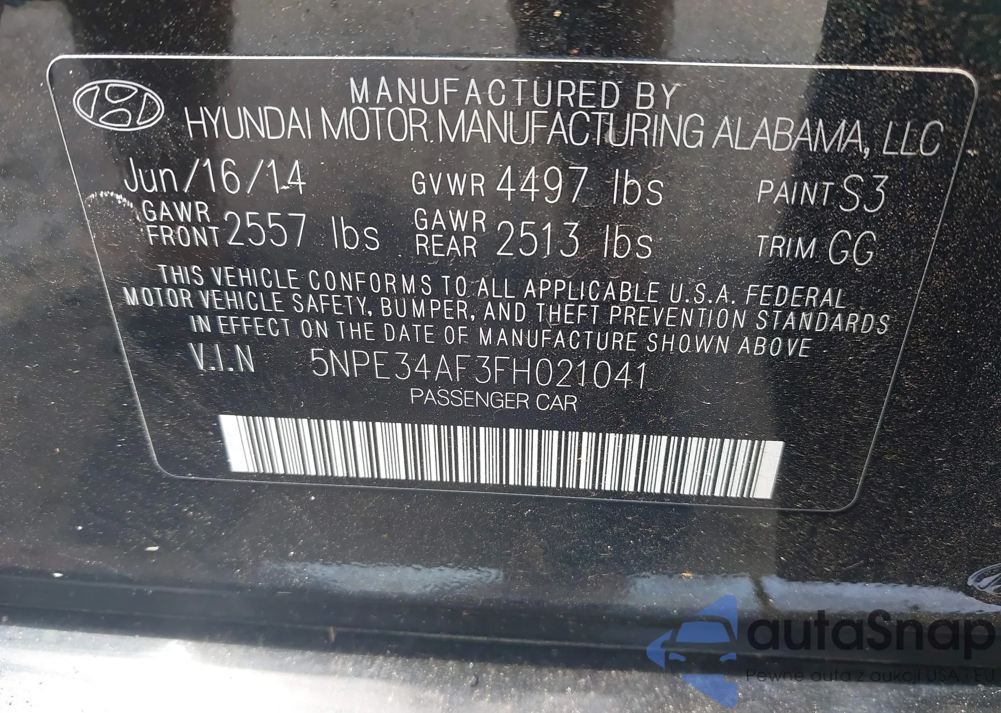 • VIN: 5NPE34AF3FH021041