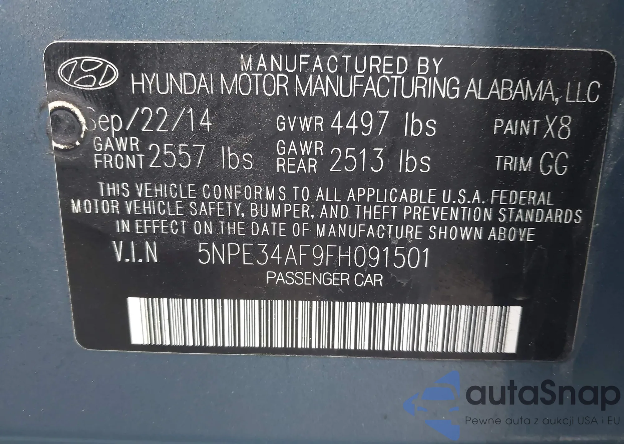 VIN: 5NPE34AF9FH091501