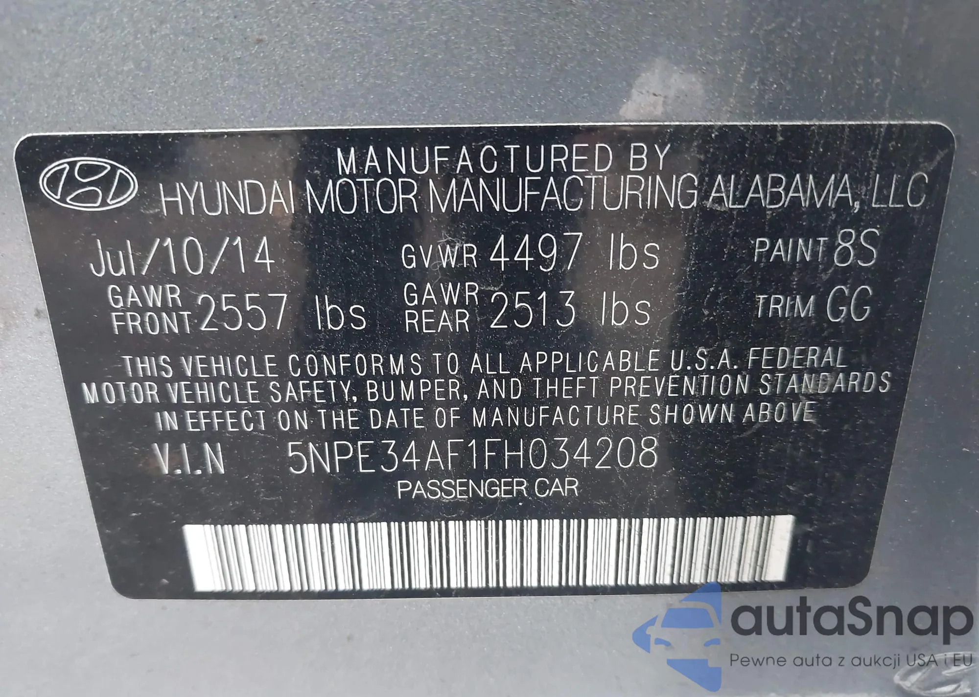 VIN: 5NPE34AF1FH034208