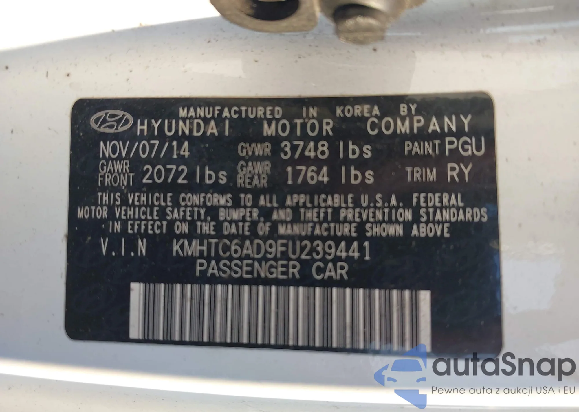 • VIN: KMHTC6AD9FU239441