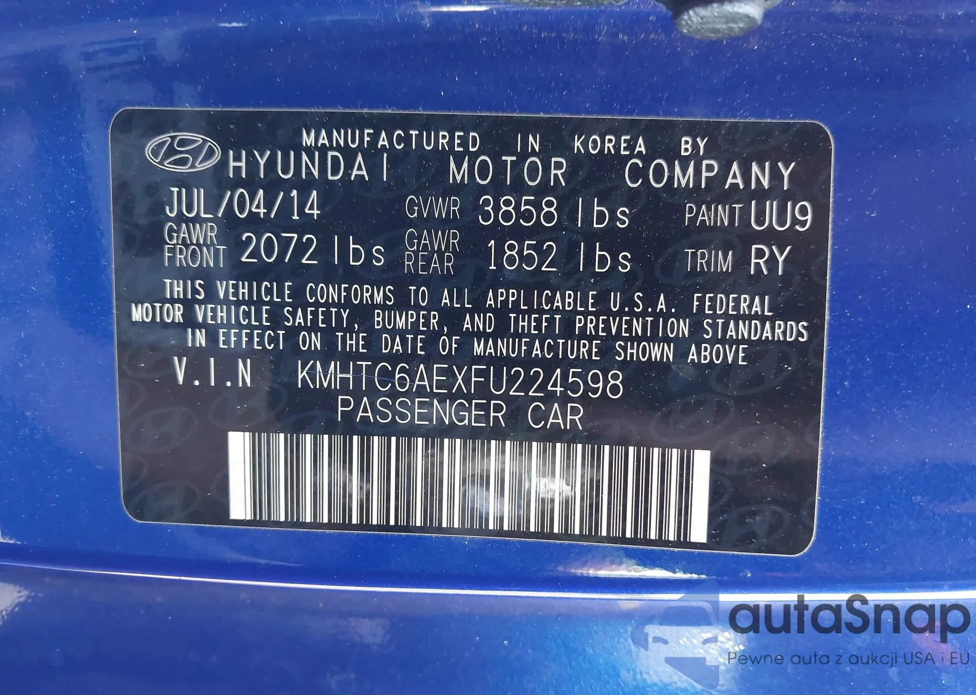 Samochód Hyundai Veloster 2015 (VIN KMHTC6AEXFU224598) nie był wcześniej licytowany. Dokumenty są czyste, przebieg odpowiada lub jest niższy niż średnia rynku. Sprzedaje go firma ubezpieczeniowa – polecamy zakup. Dostawa do portu zajmie ok. 6–8 tygodni.