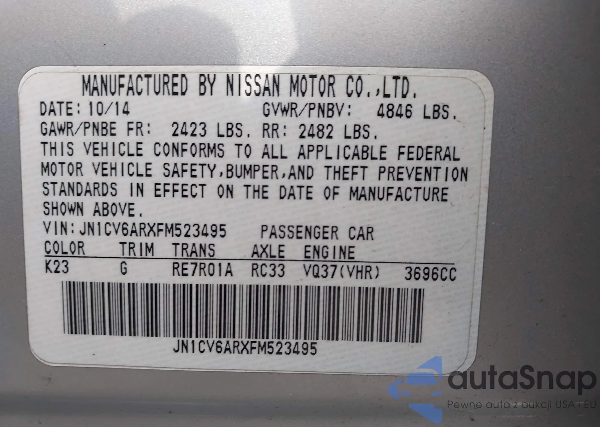 VIN: JN1CV6ARXFM523495