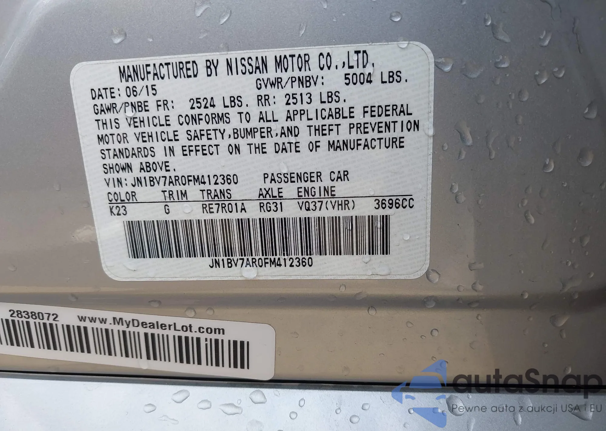 • VIN: JN1BV7AR0FM412360