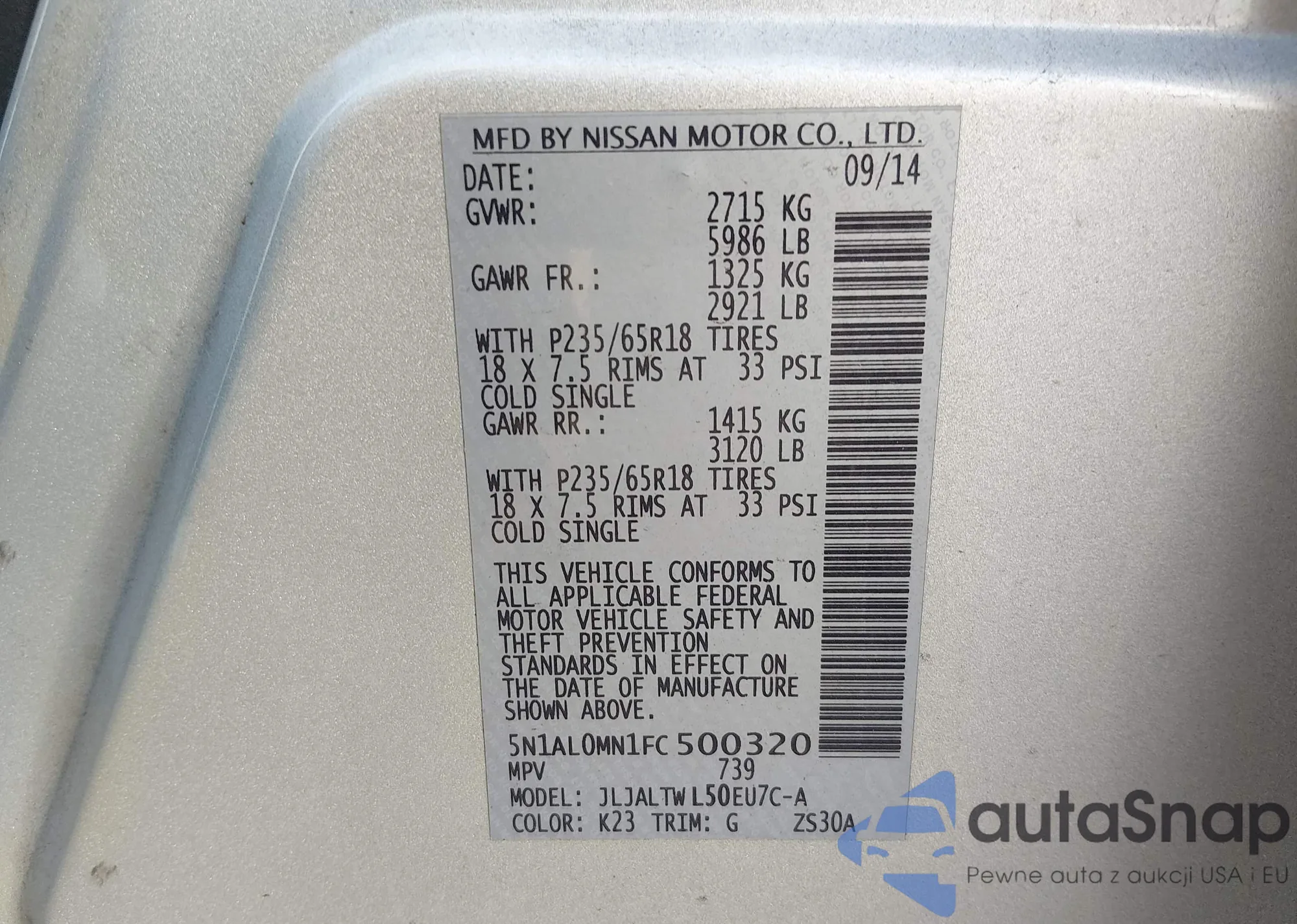 • VIN: 5N1AL0MN1FC500320