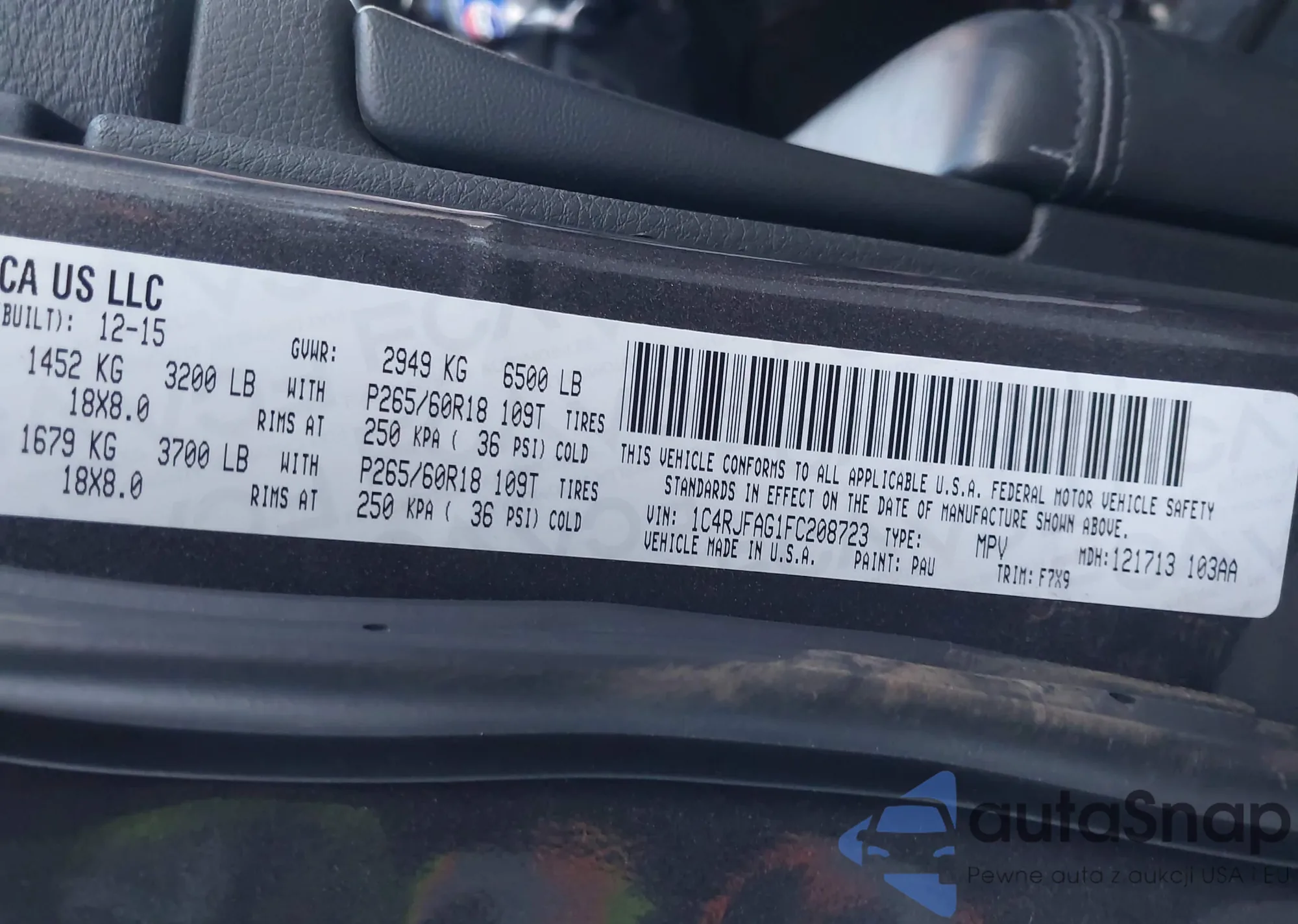 Samochód Jeep Grand Cherokee 2015 (VIN 1C4RJFAG1FC208723) nie był wcześniej licytowany. Dokumenty są czyste, przebieg odpowiada lub jest niższy niż średnia rynku. Sprzedaje go firma ubezpieczeniowa – polecamy zakup. Dostawa do portu zajmie ok. 6–8 tygodni.