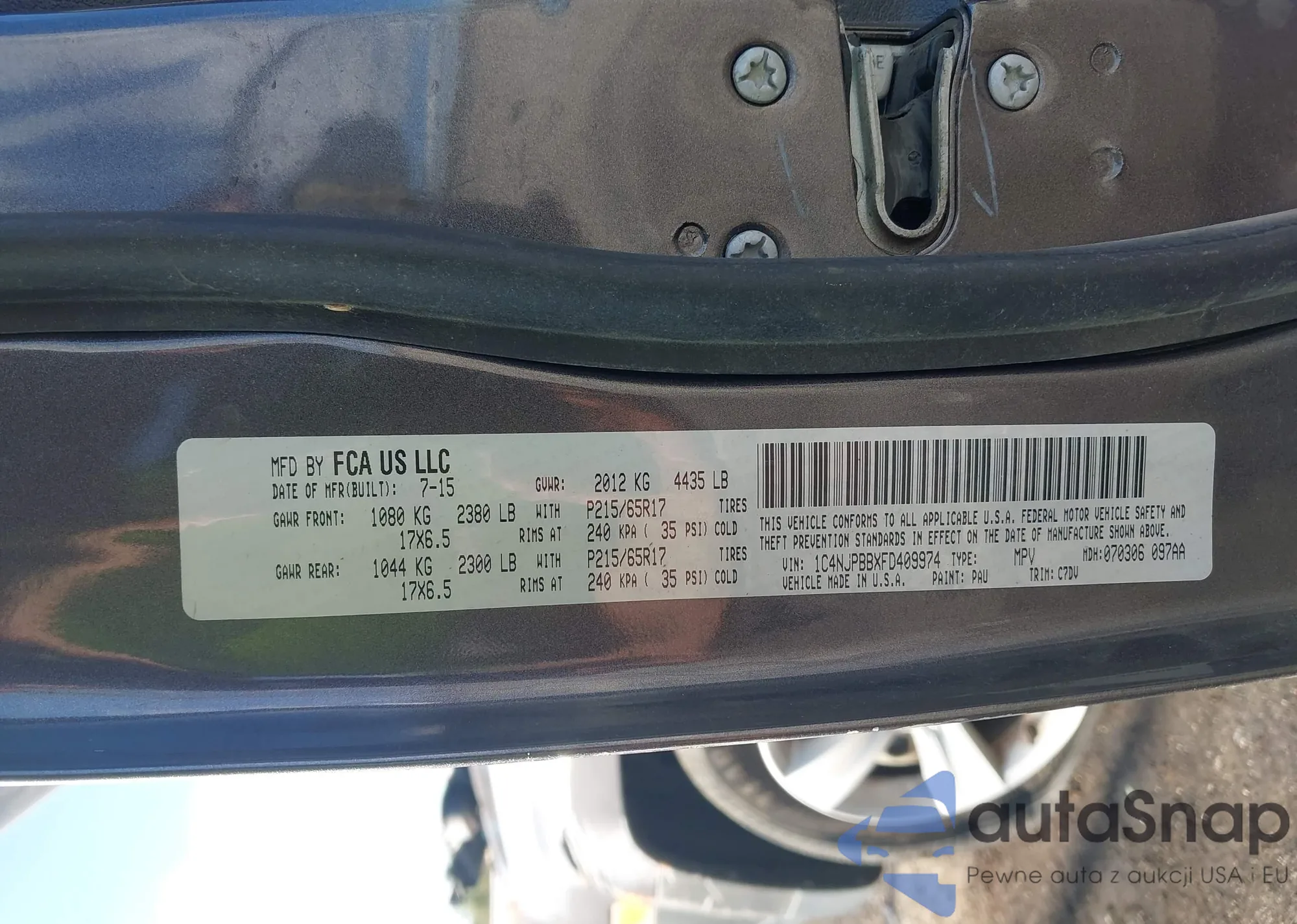 Samochód Jeep Liberty (Patriot) 2015 (VIN 1C4NJPBBXFD409974) nie był wcześniej licytowany. Dokumenty są czyste, przebieg odpowiada lub jest niższy niż średnia rynku. Sprzedaje go firma ubezpieczeniowa – polecamy zakup. Dostawa do portu zajmie ok. 6–8 tygodni.