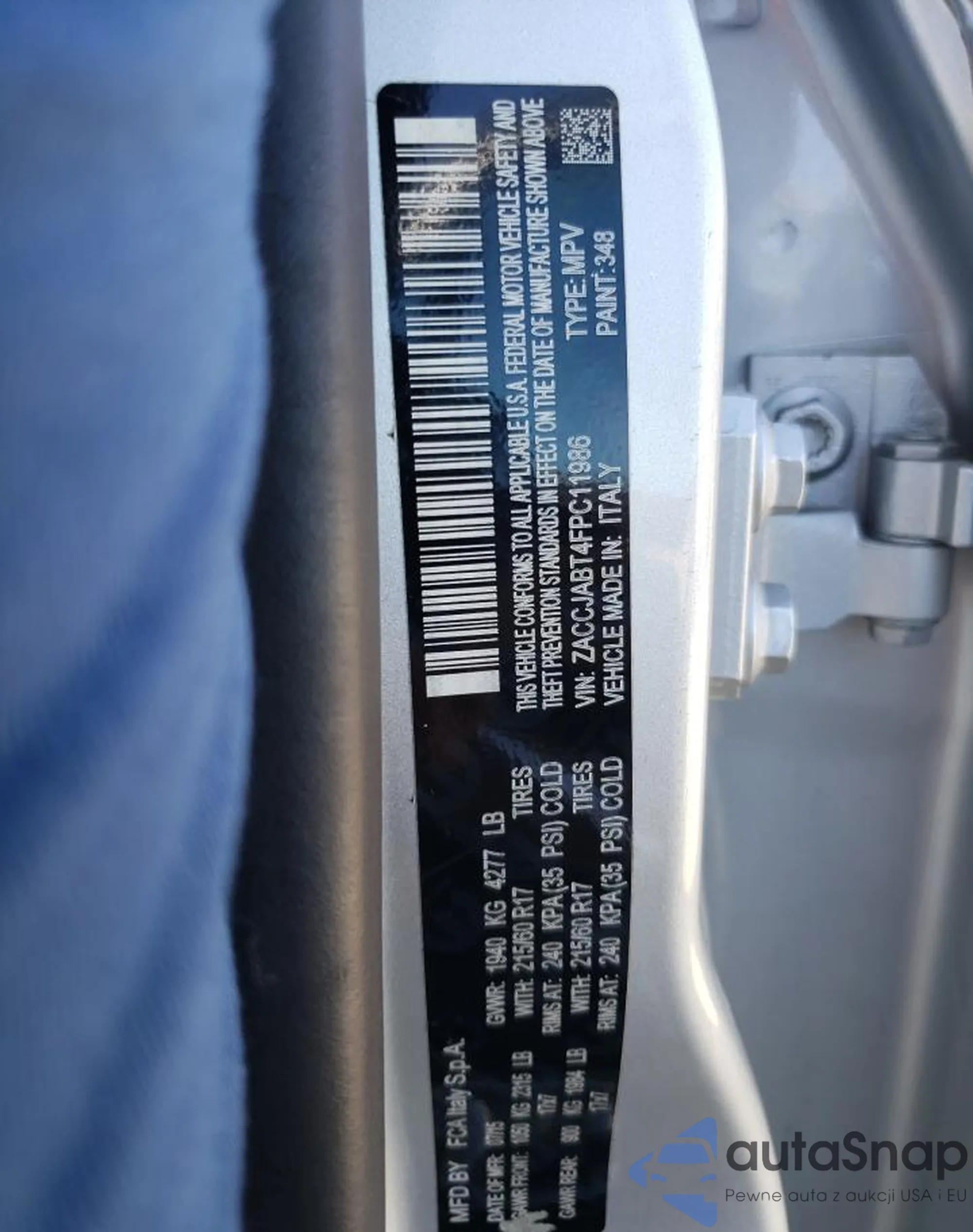 • VIN: ZACCJABT4FPC11986