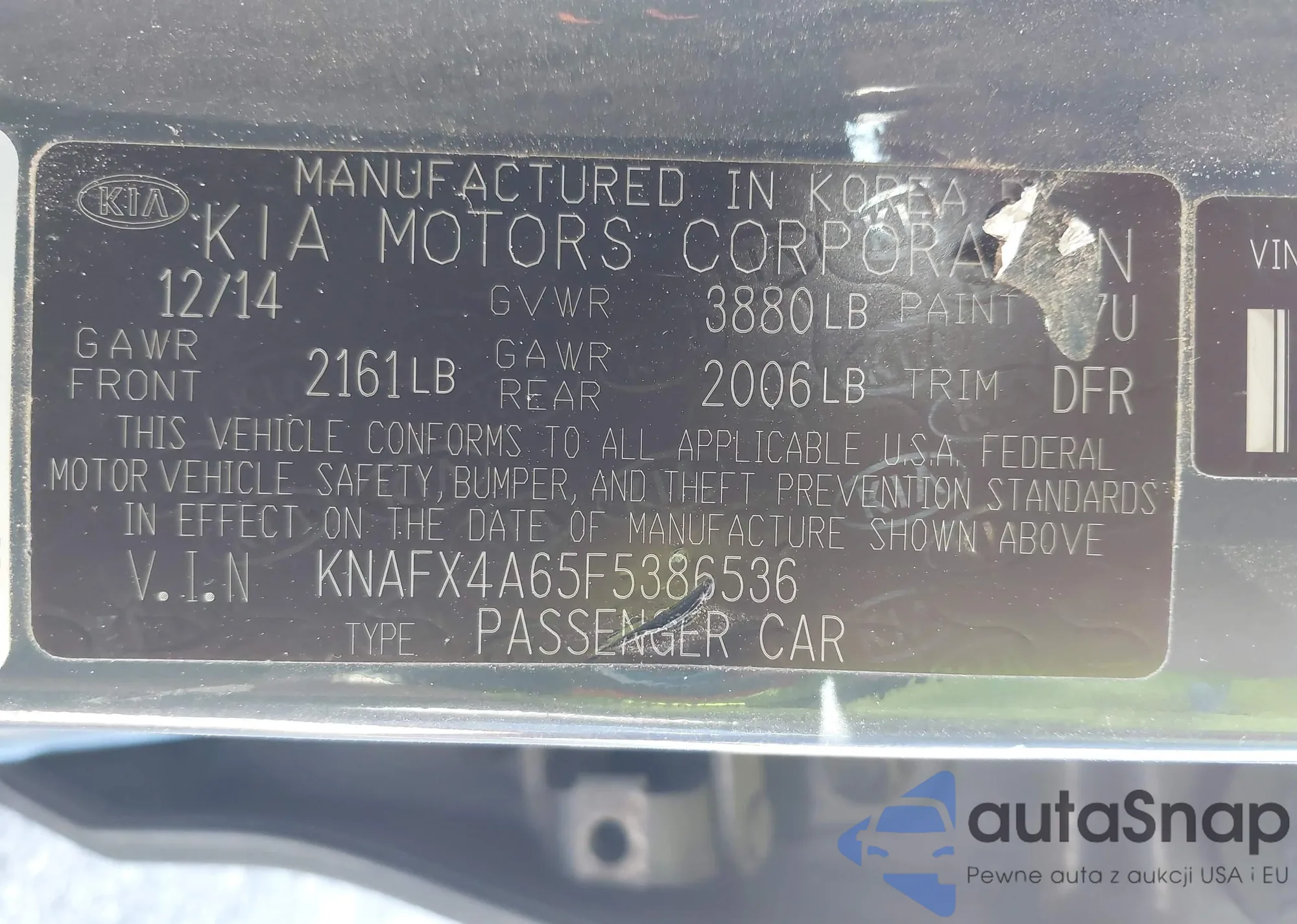 VIN: KNAFX4A65F5386536