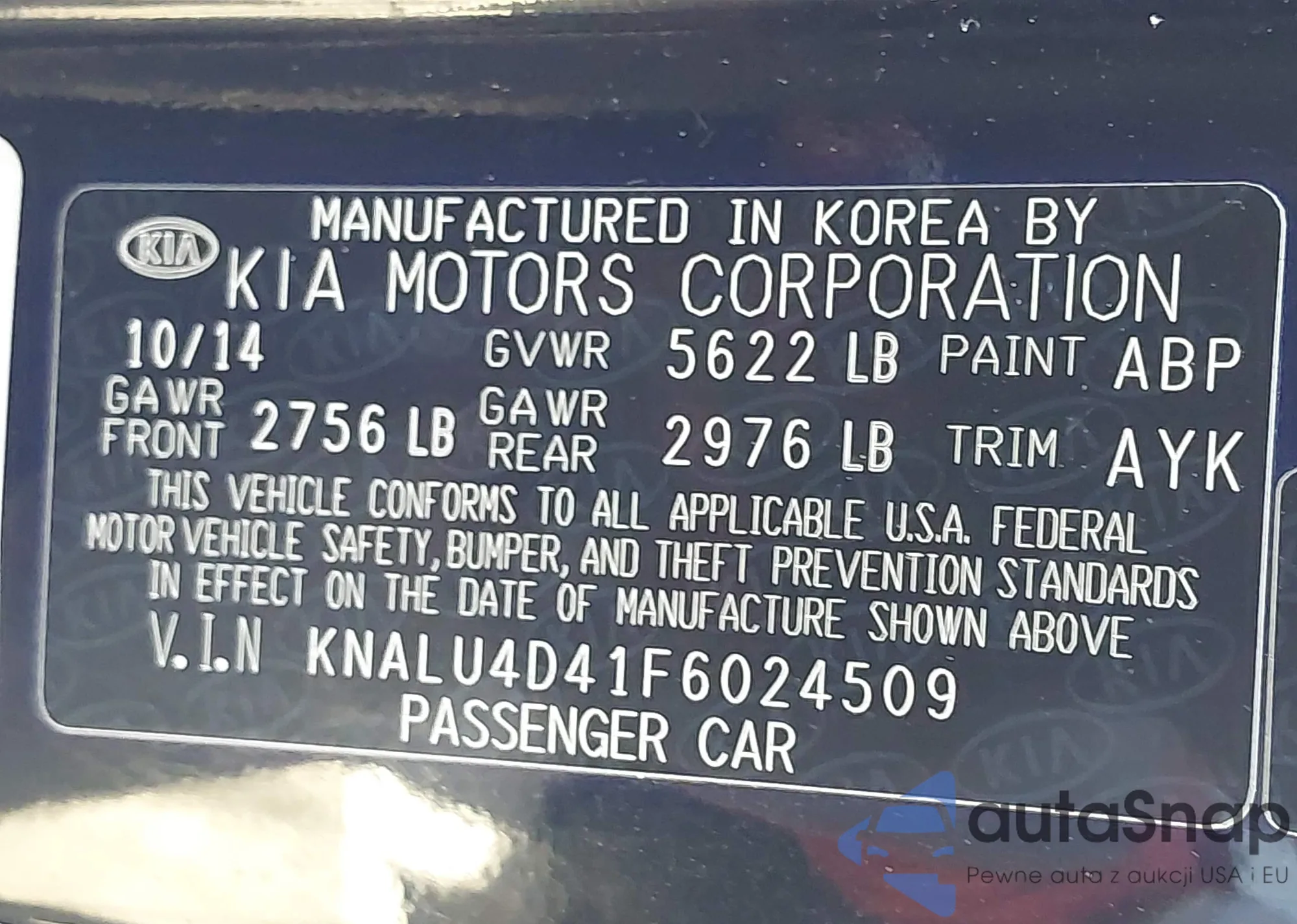 VIN: KNALU4D41F6024509