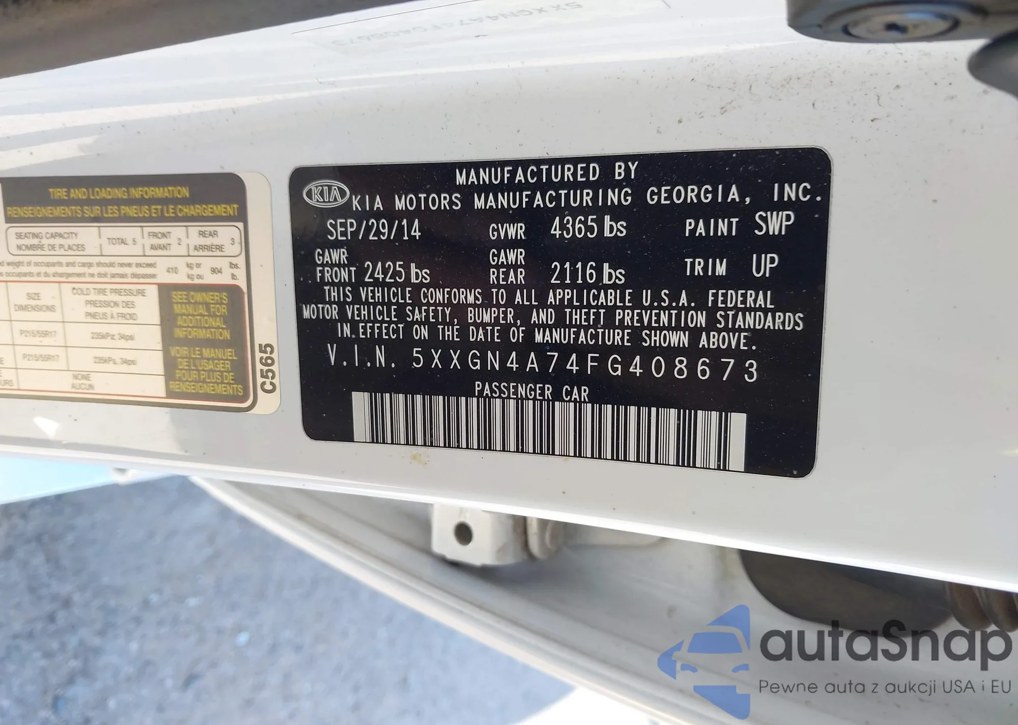 Samochód Kia Optima 2015 (VIN 5XXGN4A74FG408673) nie był wcześniej licytowany. Dokumenty są czyste, przebieg odpowiada lub jest niższy niż średnia rynku. Sprzedaje go firma ubezpieczeniowa – polecamy zakup. Dostawa do portu zajmie ok. 6–8 tygodni.