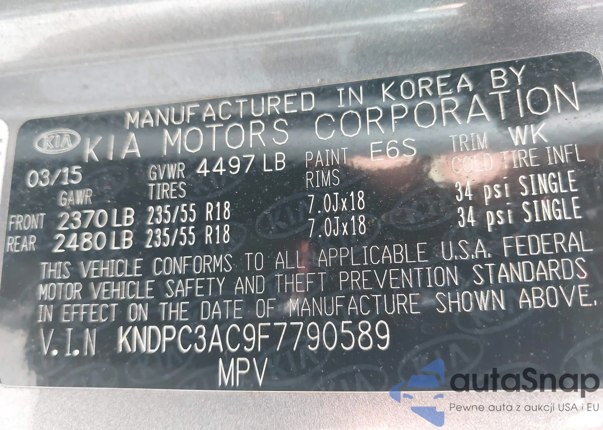 VIN: KNDPC3AC9F7790589