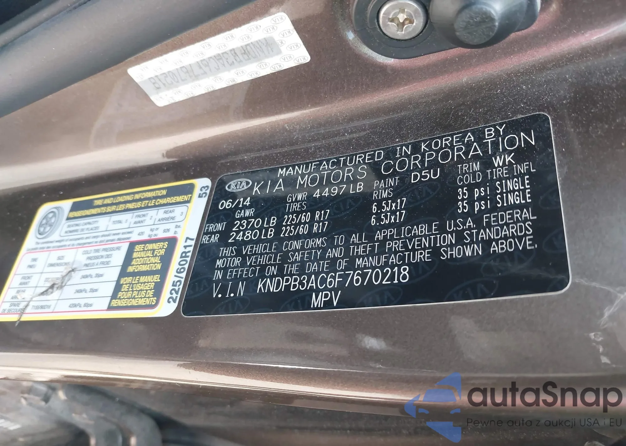 • VIN: KNDPB3AC6F7670218