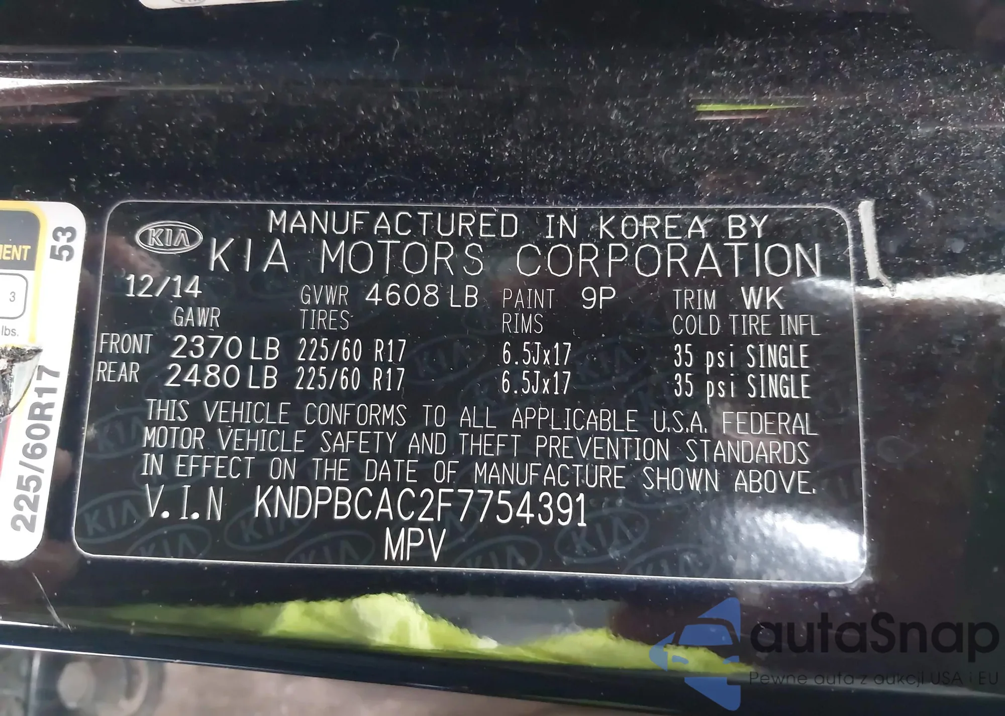 VIN: KNDPBCAC2F7754391