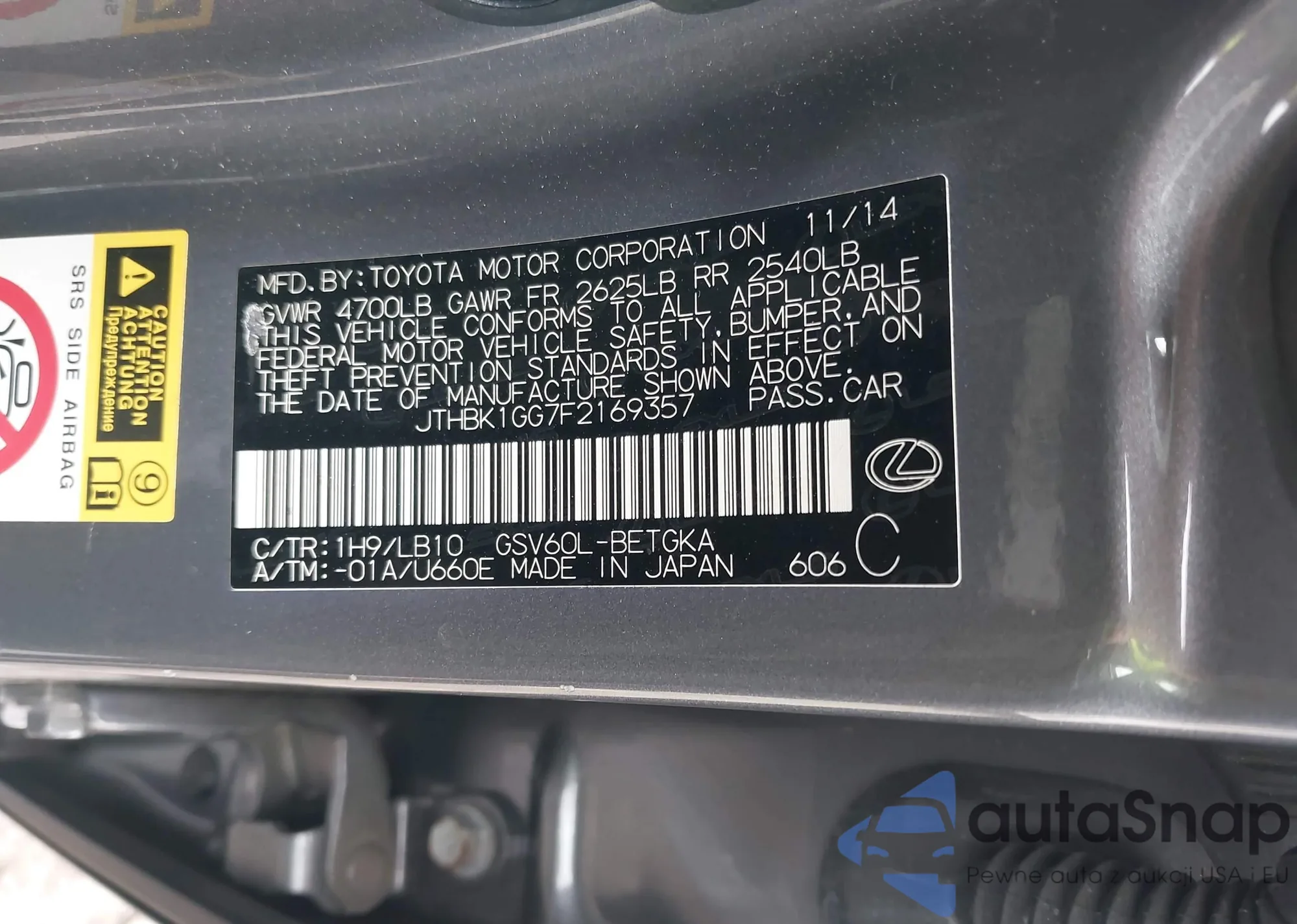 VIN: JTHBK1GG7F2169357
