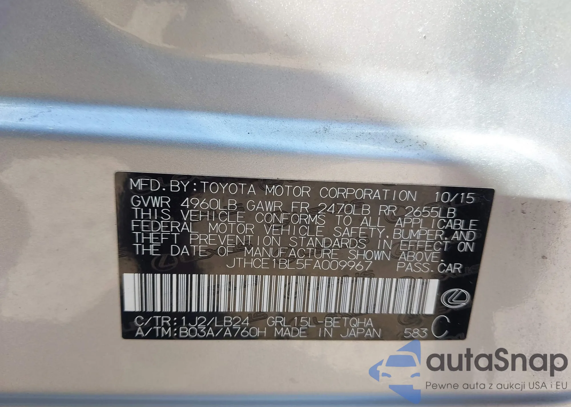 VIN: JTHCE1BL5FA009967
