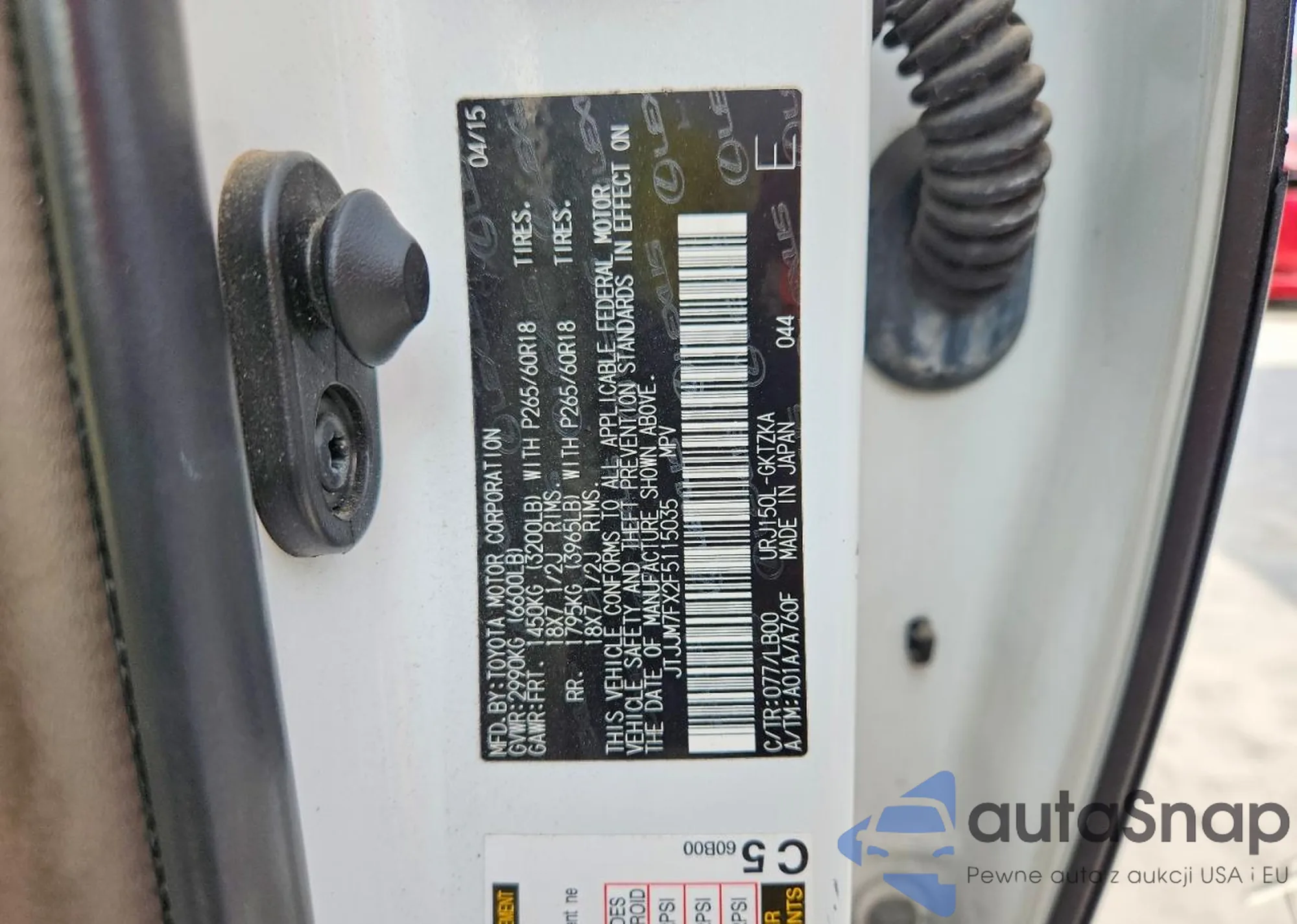 Samochód Lexus GX 2015 (VIN JTJJM7FX2F5115035) nie był wcześniej licytowany. Dokumenty są czyste, przebieg odpowiada lub jest niższy niż średnia rynku. Sprzedaje go firma ubezpieczeniowa – polecamy zakup. Dostawa do portu zajmie ok. 6–8 tygodni.