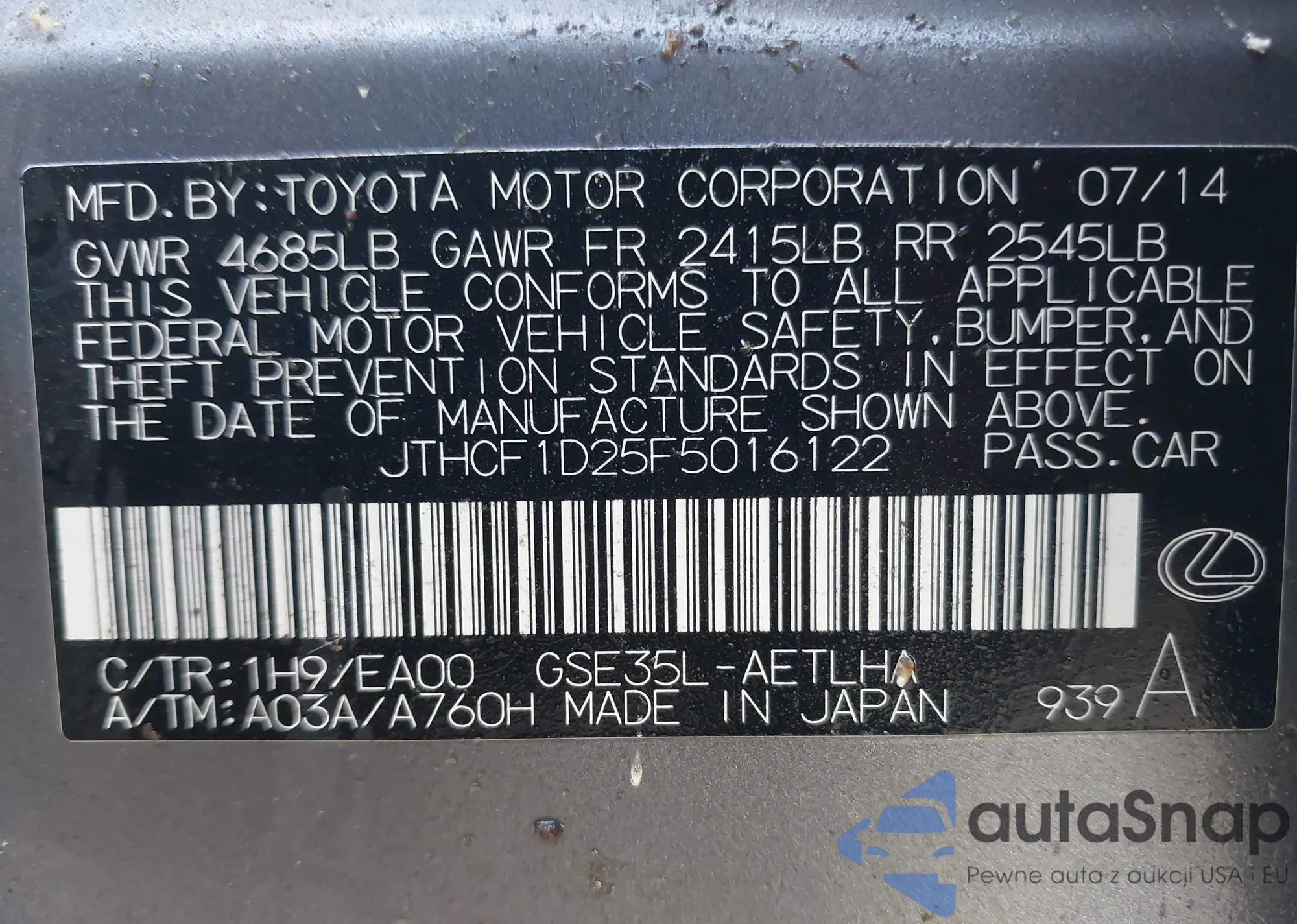Lexus IS 2015 – Historia pojazdu (sprzedany na IAAI)