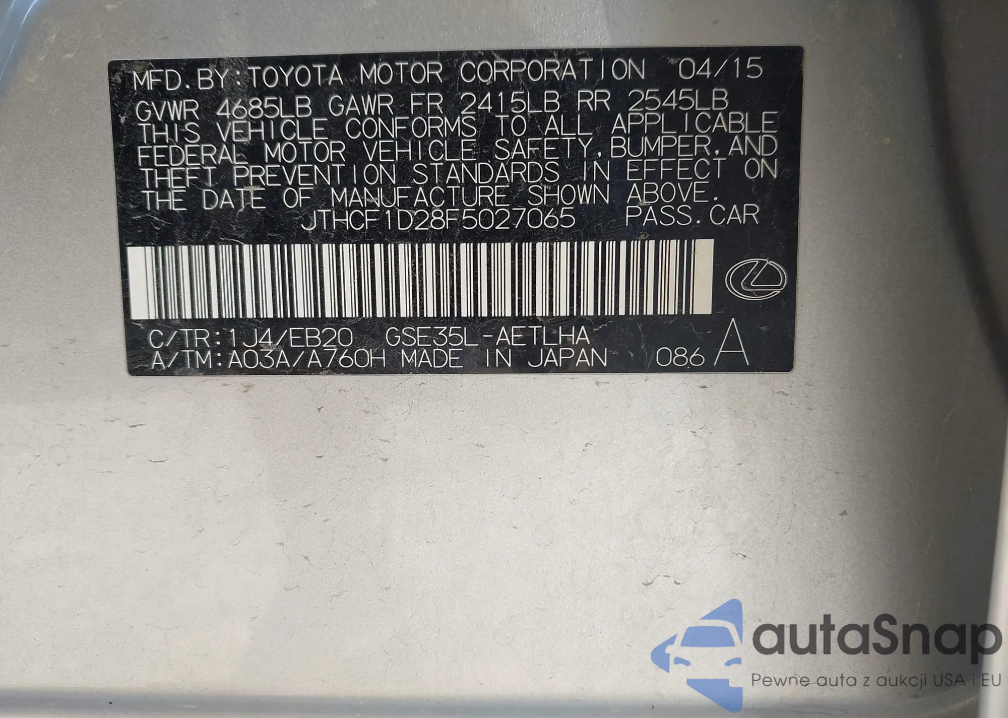 VIN: JTHCF1D28F5027065