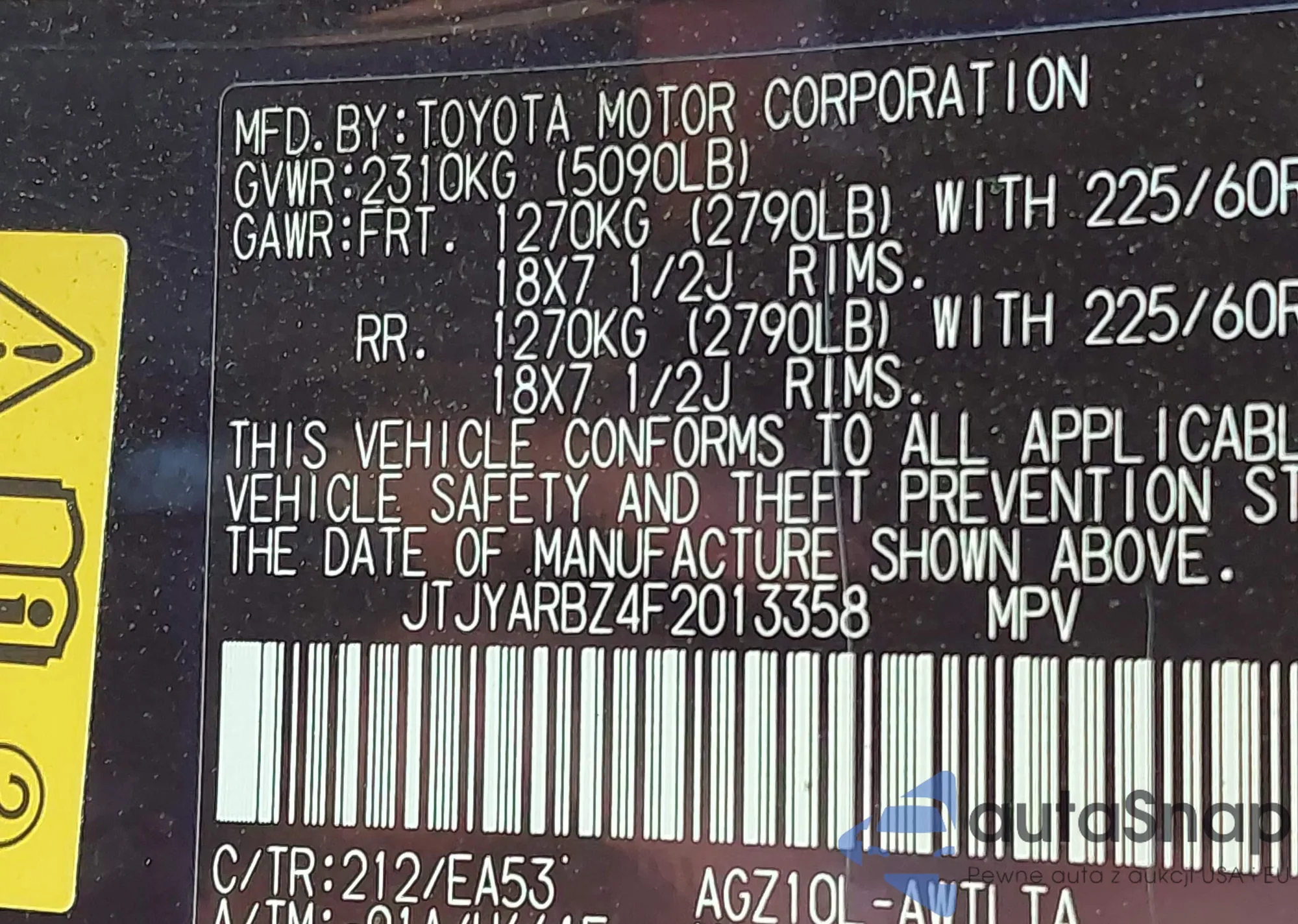 • VIN: JTJYARBZ4F2013358