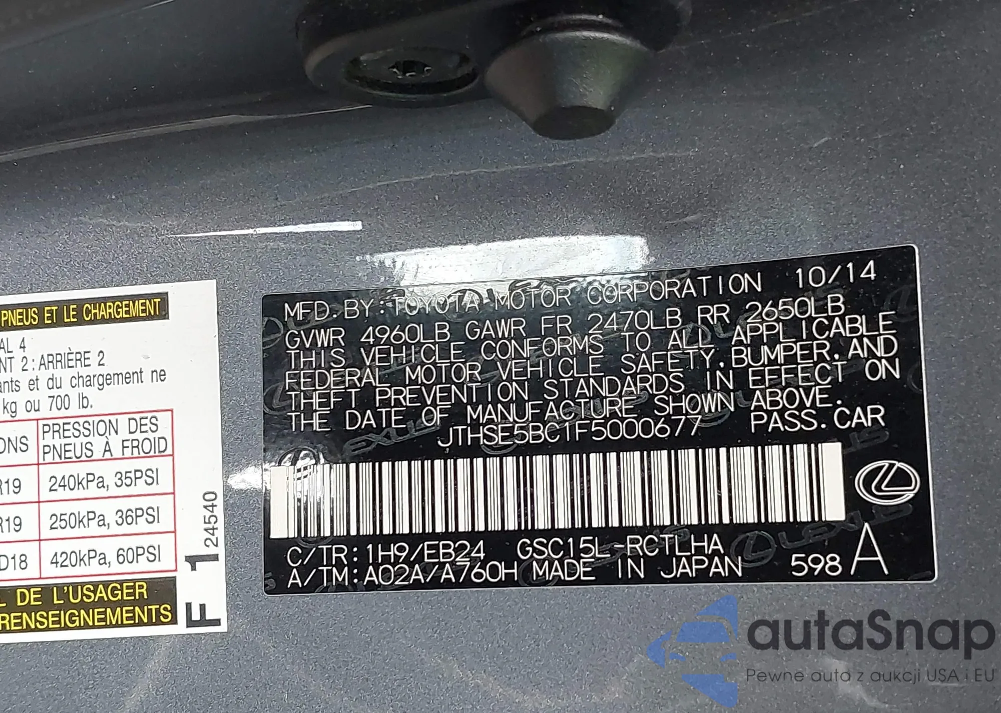 VIN: JTHSE5BC1F5000677