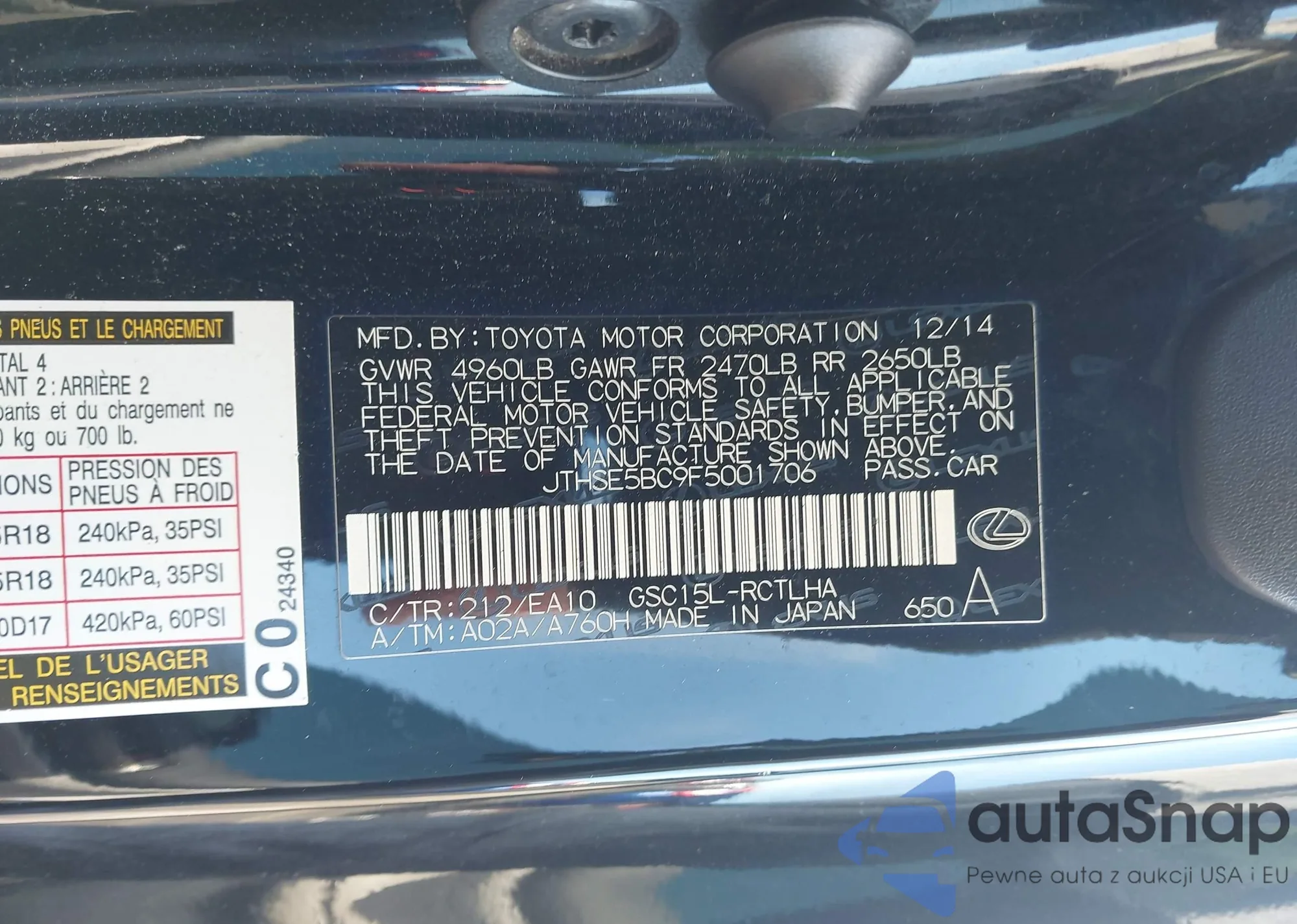 Samochód Lexus RC 2015 (VIN JTHSE5BC9F5001706) nie był wcześniej licytowany. Dokumenty są czyste, przebieg odpowiada lub jest niższy niż średnia rynku. Sprzedaje go firma ubezpieczeniowa – polecamy zakup. Dostawa do portu zajmie ok. 6–8 tygodni.