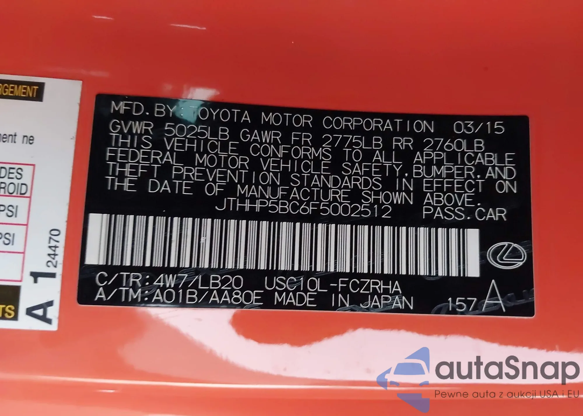 VIN: JTHHP5BC6F5002512