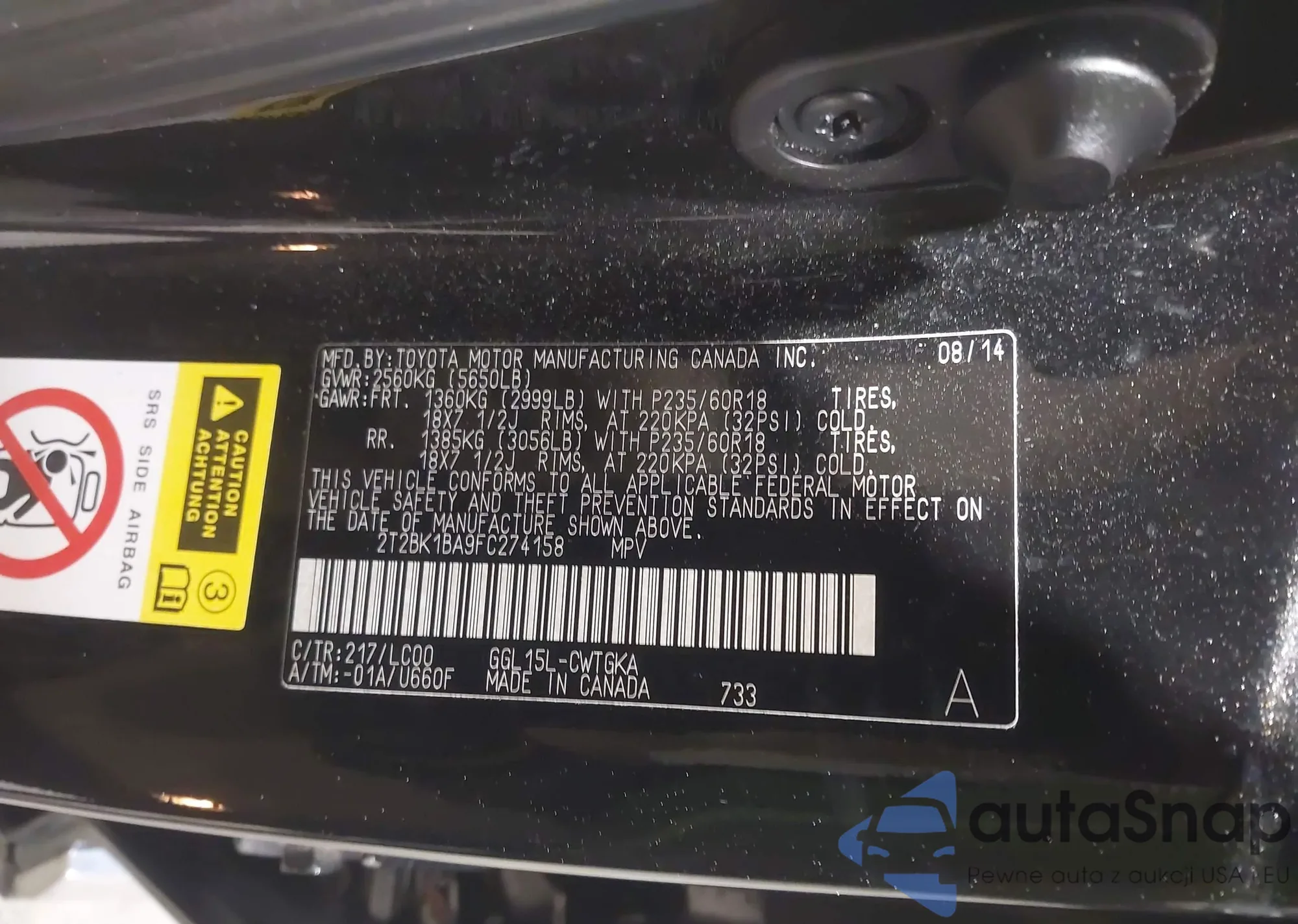 VIN: 2T2BK1BA9FC274158
