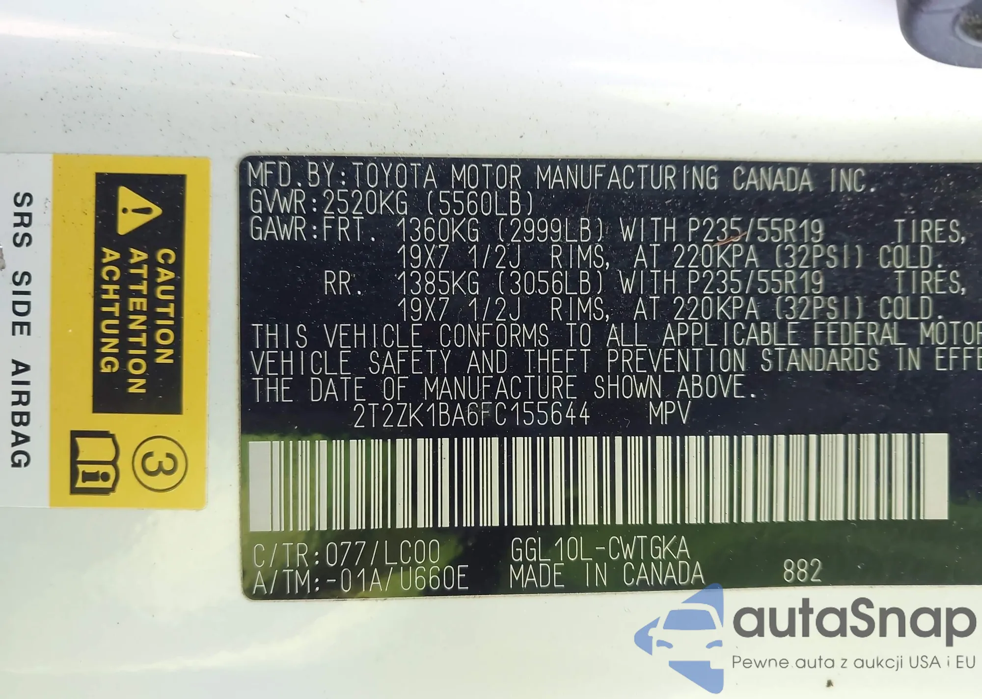 VIN: 2T2ZK1BA6FC155644