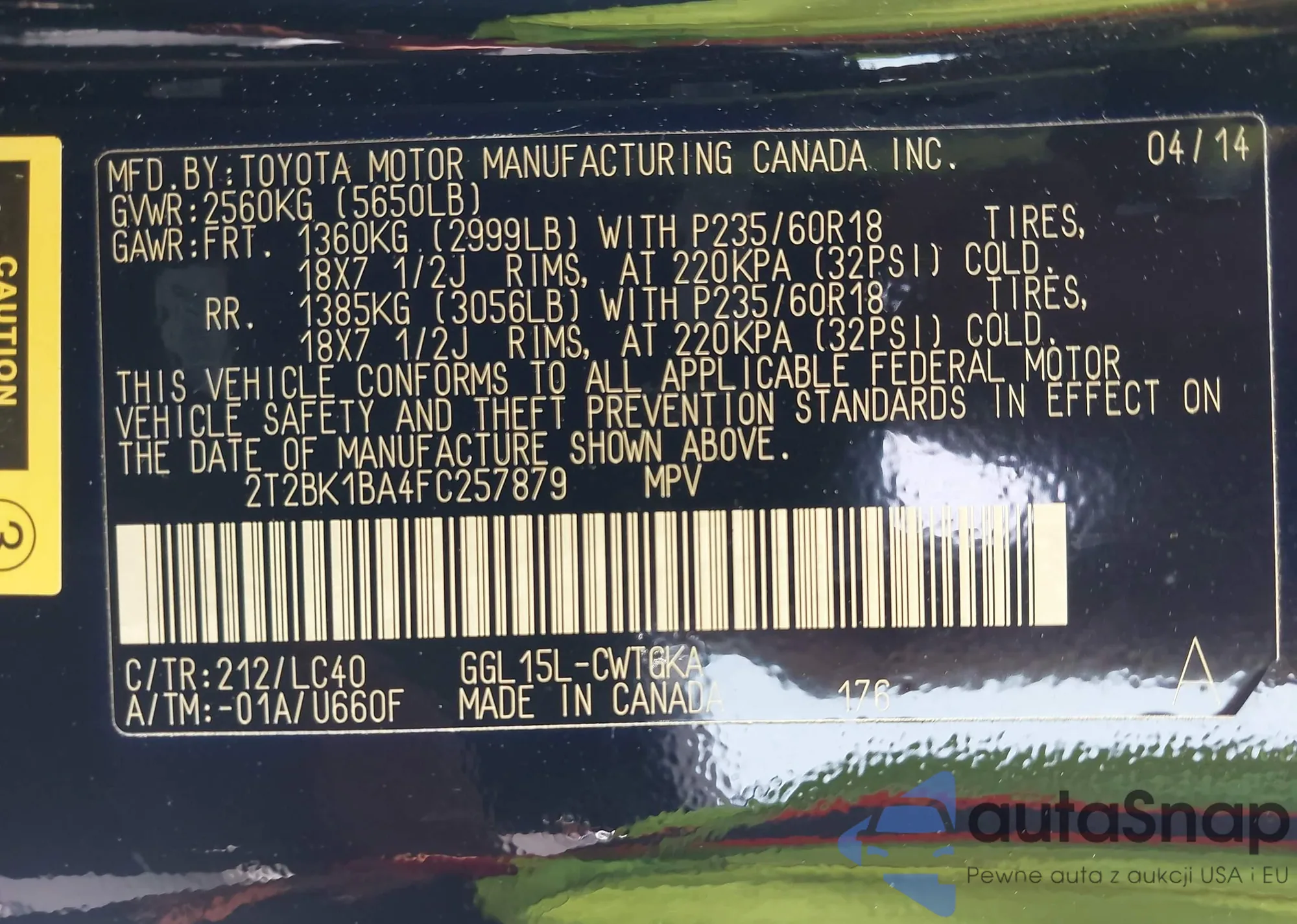 VIN: 2T2BK1BA4FC257879