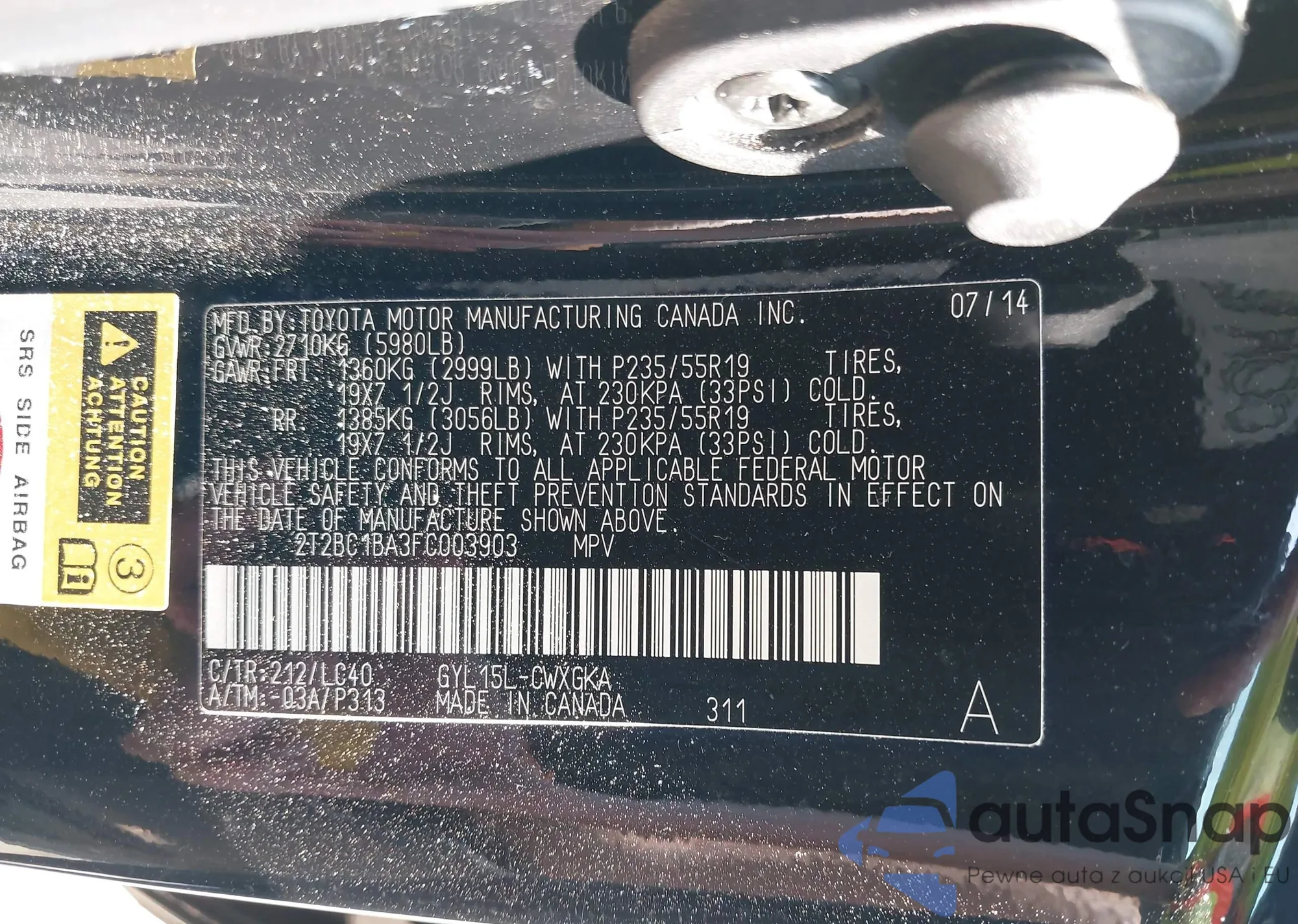 VIN: 2T2BC1BA3FC003903