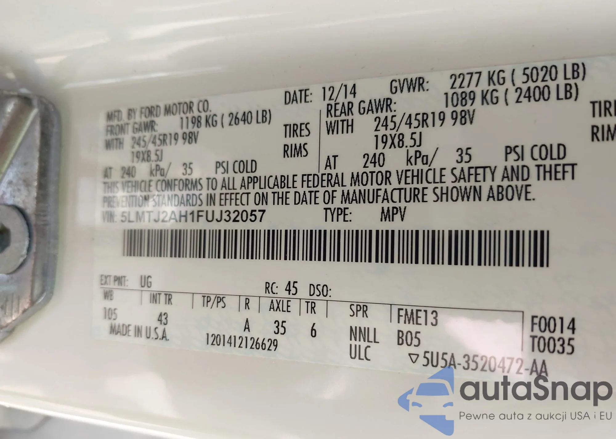 VIN: 5LMTJ2AH1FUJ32057