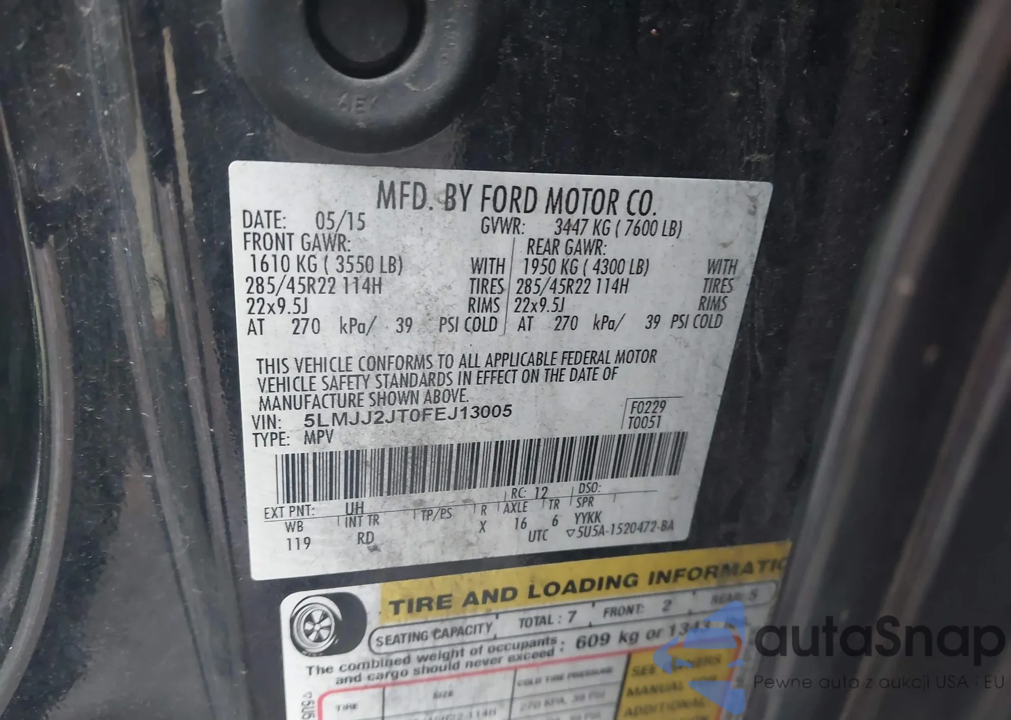 Samochód Lincoln Navigator 2015 (VIN 5LMJJ2JT0FEJ13005) nie był wcześniej licytowany. Dokumenty są czyste, przebieg odpowiada lub jest niższy niż średnia rynku. Sprzedaje go firma ubezpieczeniowa – polecamy zakup. Dostawa do portu zajmie ok. 6–8 tygodni.