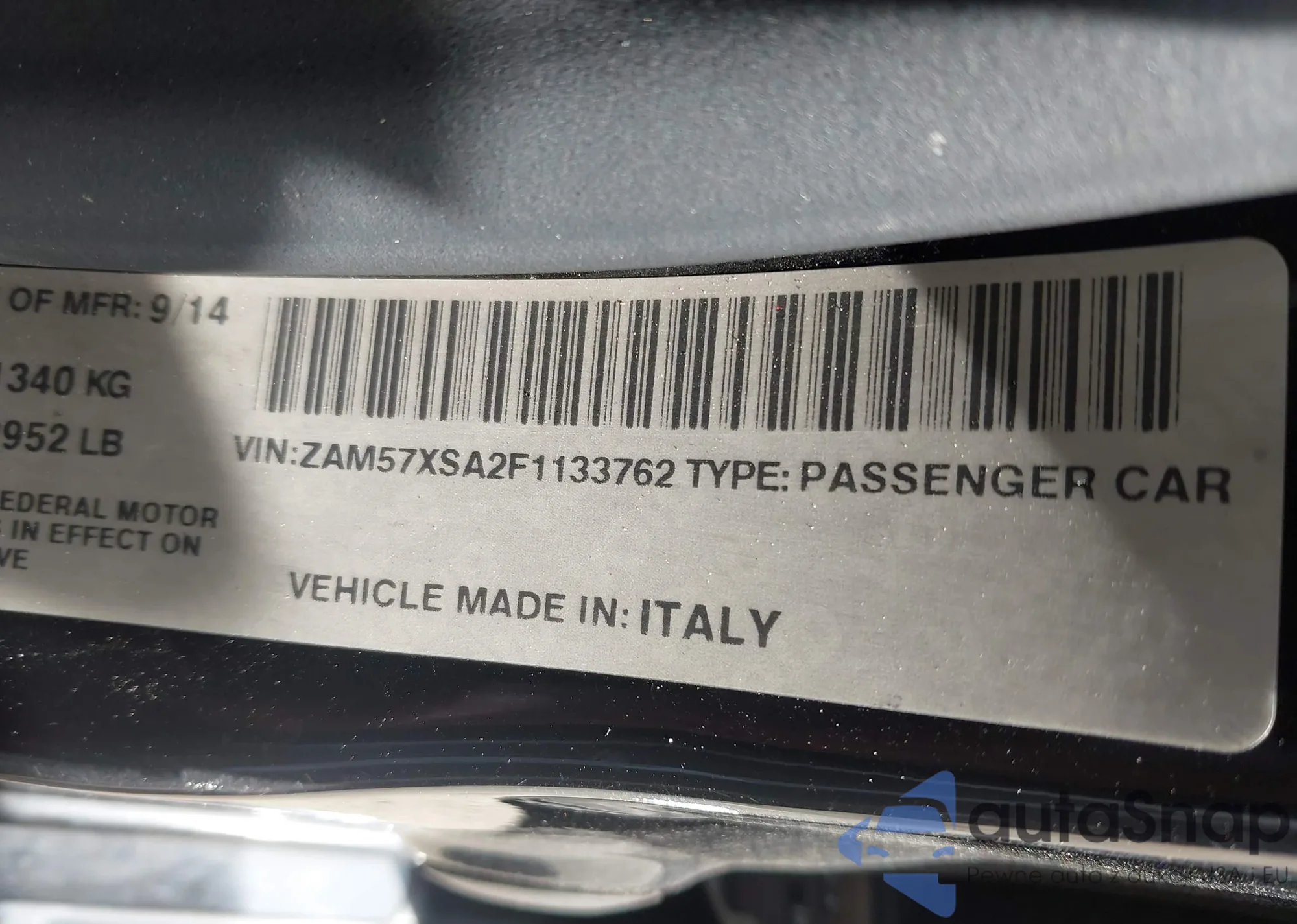 VIN: ZAM57XSA2F1133762