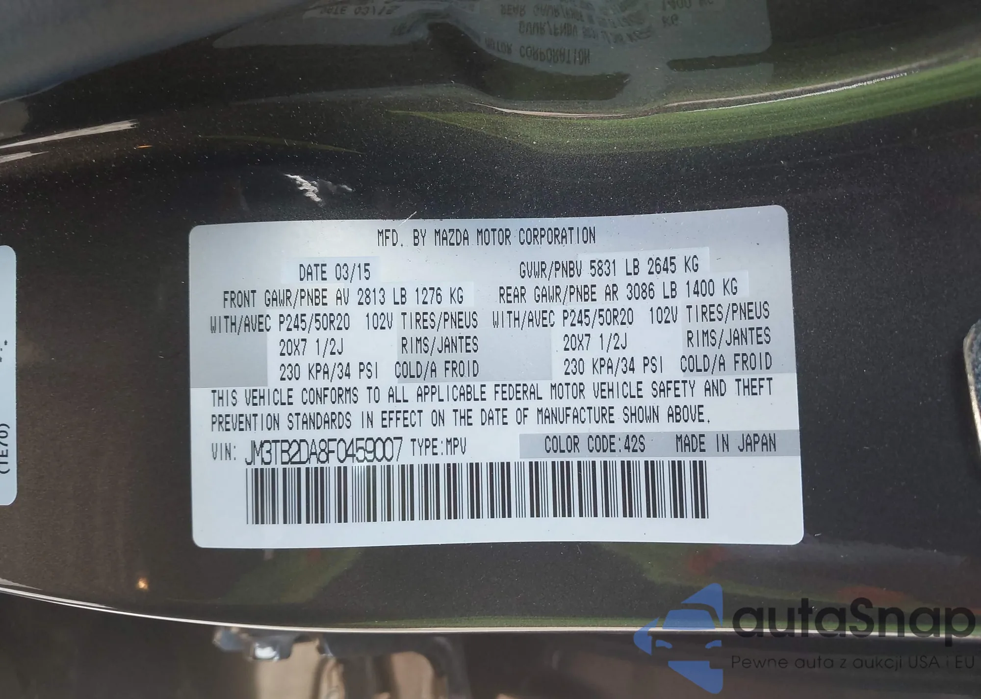 VIN: JM3TB2DA8F0459007