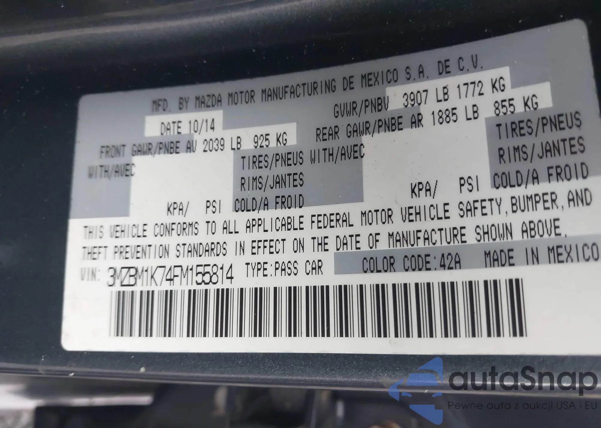 VIN: 3MZBM1K74FM155814