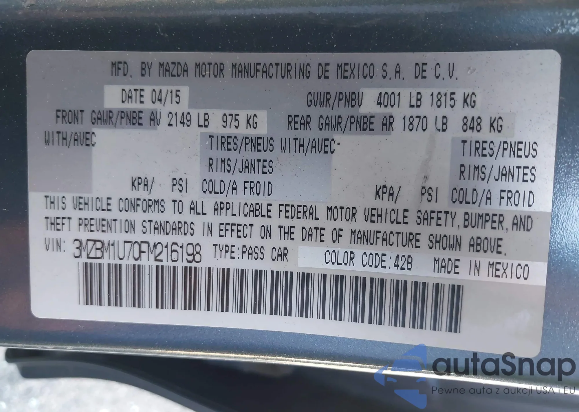 VIN: 3MZBM1U70FM216198