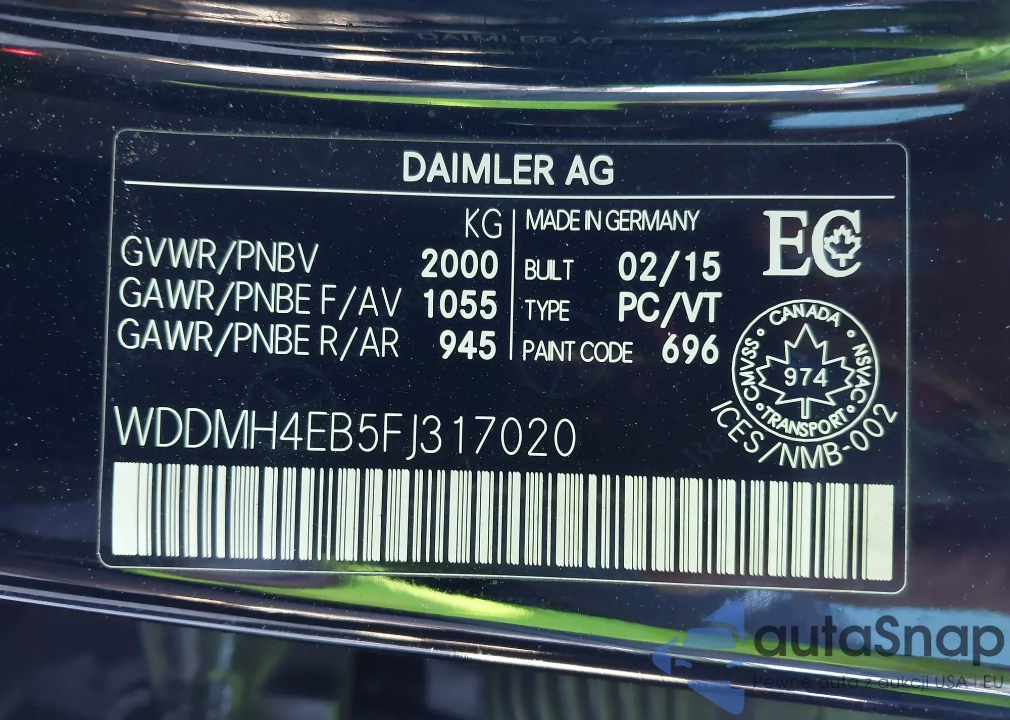 • VIN: WDDMH4EB5FJ317020