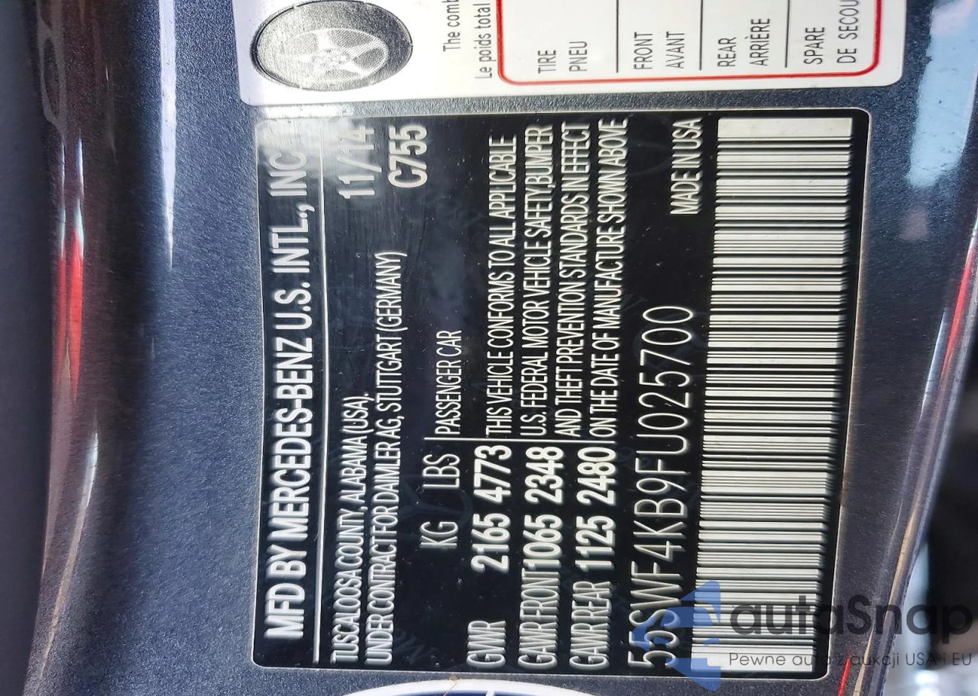 Samochód Mercedes-Benz C-klasse 2015 (VIN 55SWF4KB9FU025700) ma dokumenty uniemożliwiające rejestrację. Mogą pojawić się trudności przy eksporcie i rejestracji. Skontaktuj się z ekspertami AutaSnap w celu znalezienia alternatywy.