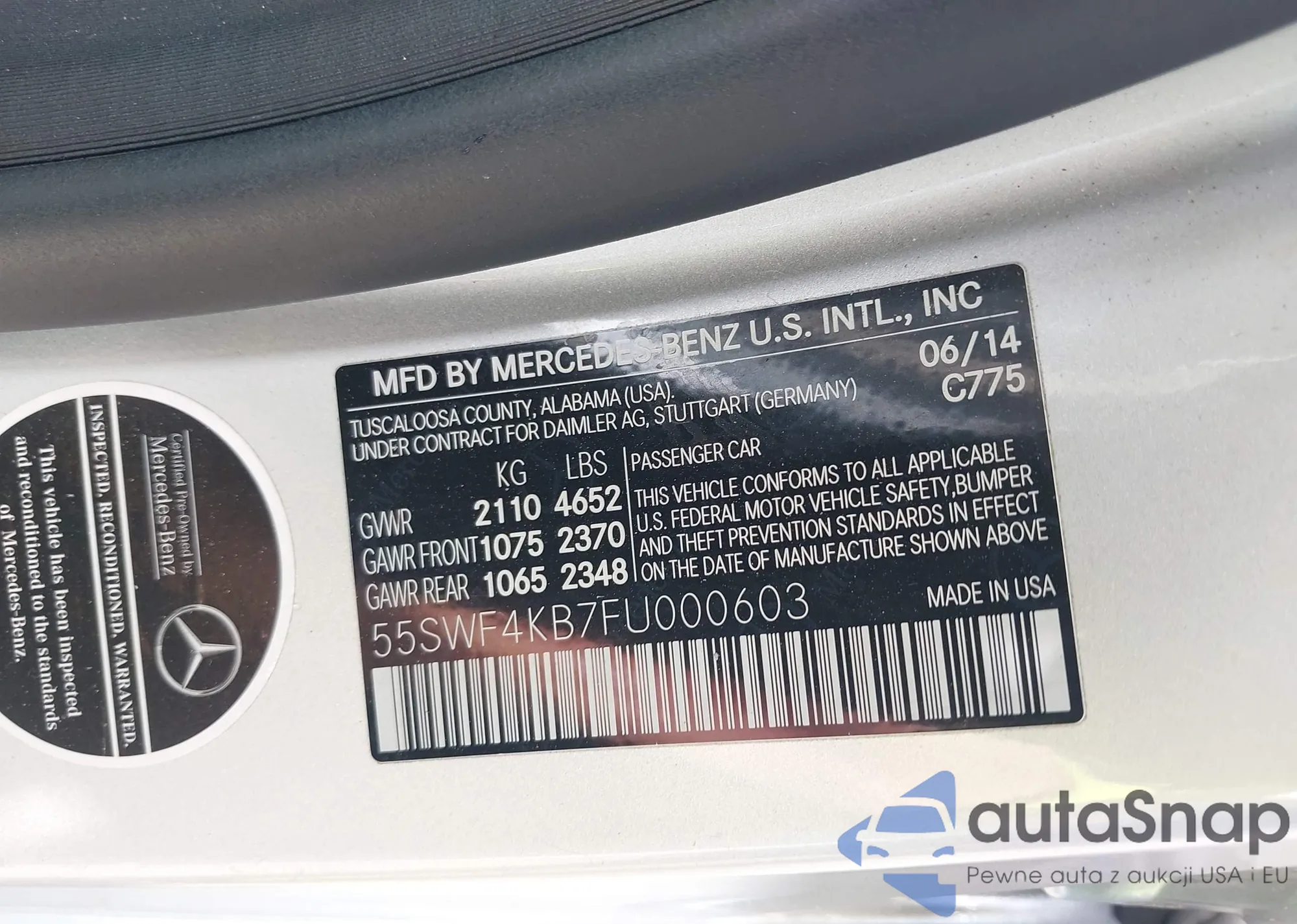 Samochód Mercedes-Benz C-klasse 2015 (VIN 55SWF4KB7FU000603) nie był wcześniej licytowany. Dokumenty są czyste, przebieg odpowiada lub jest niższy niż średnia rynku. Sprzedaje go firma ubezpieczeniowa – polecamy zakup. Dostawa do portu zajmie ok. 6–8 tygodni.