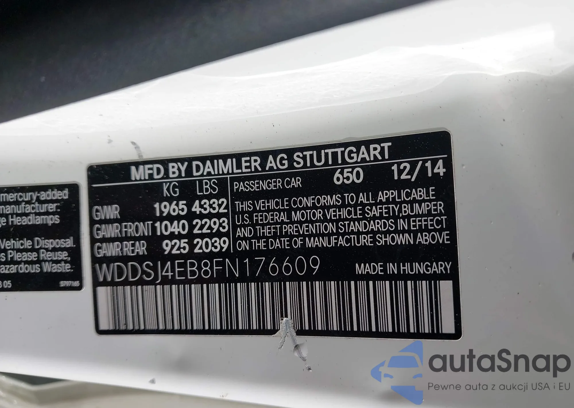 Samochód Mercedes-Benz CLA-klasse 2015 (VIN WDDSJ4EB8FN176609) nie był wcześniej licytowany. Dokumenty są czyste, przebieg odpowiada lub jest niższy niż średnia rynku. Sprzedaje go firma ubezpieczeniowa – polecamy zakup. Dostawa do portu zajmie ok. 6–8 tygodni.